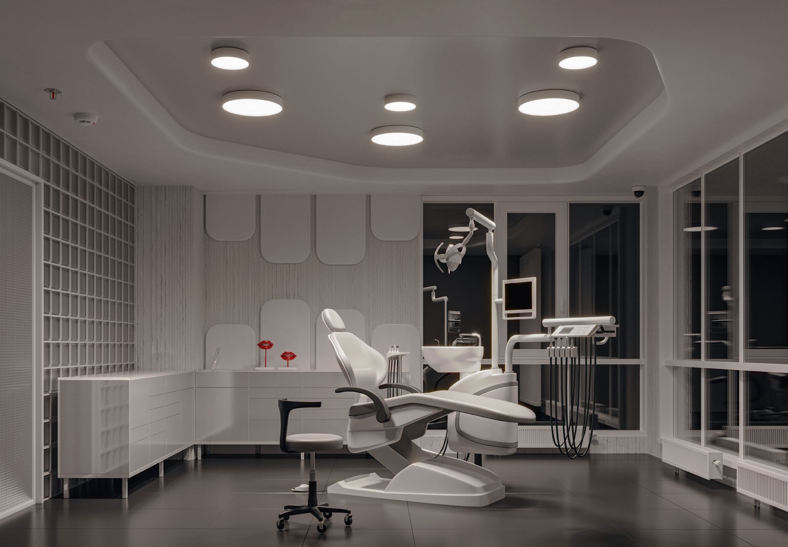 Панорамные окна в просторном стоматологическом кабинете пропускают большое количество естественного света, а также помогают посетителям расслабиться и отвлечься от неприятной процедуры, посмотрев на шикарные городские пейзажи. Однако с наступлением сумерек даже панорамные окна не помогут при отключении электроэнергии.