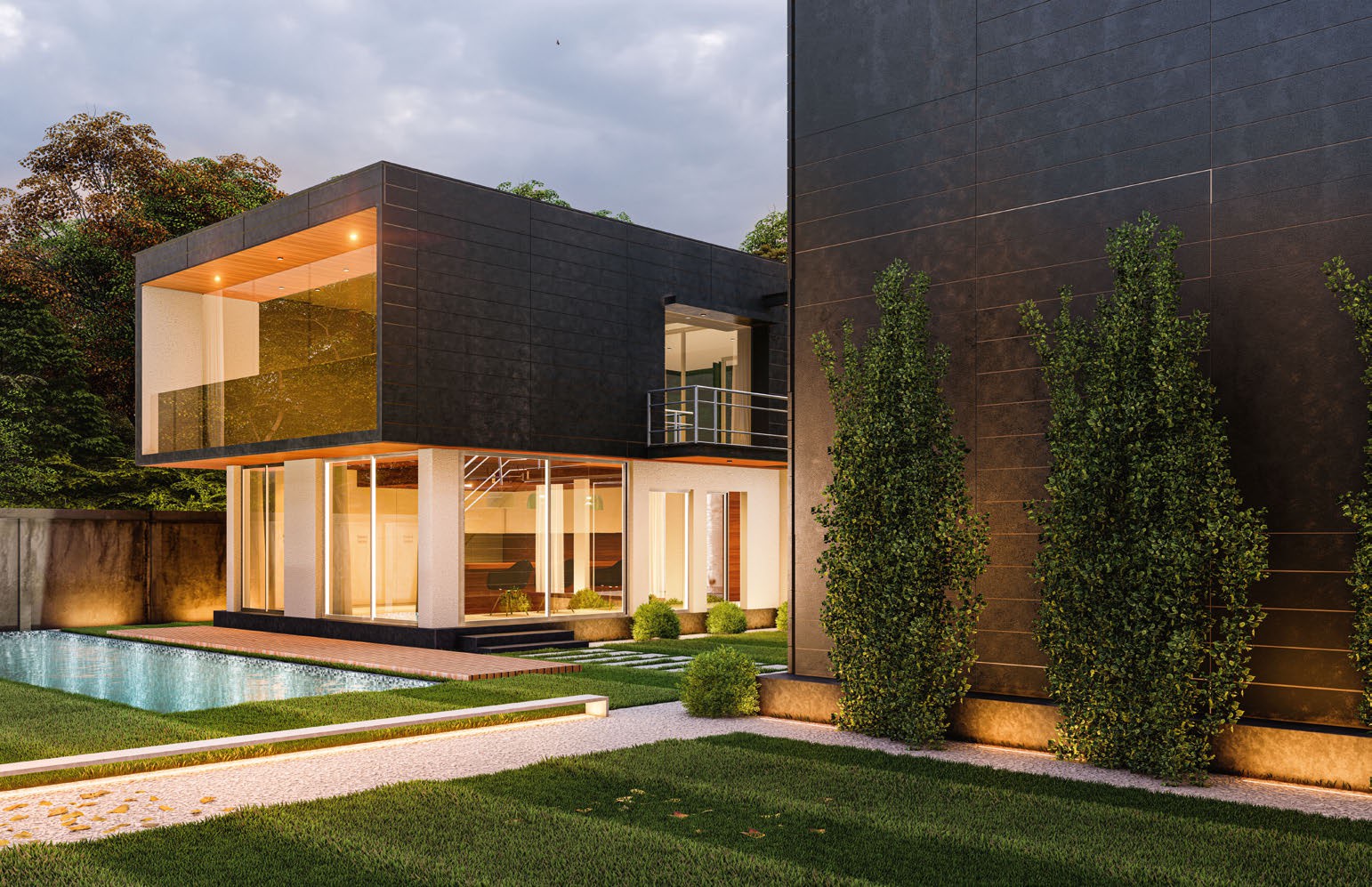 В оформлении территории виллы использованы светильники LUMILINE, которые позволяют создавать непрерывные, равномерно светящиеся линии света.