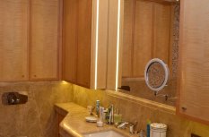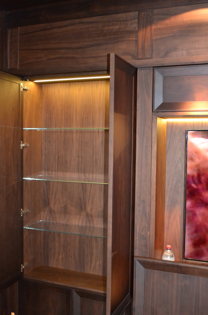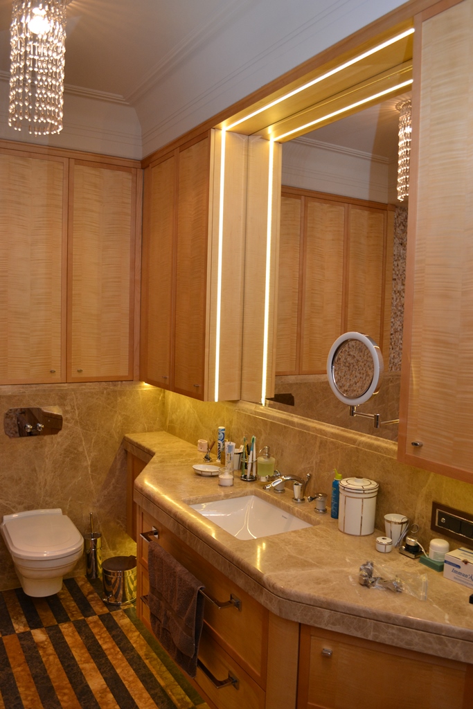 Акцентное освещение (подсветка) служит прекрасным способом привлечь внимание окружающих к определенным уголкам квартиры, именно этого и хотели достичь владельцы вышеупомянутой квартиры.
