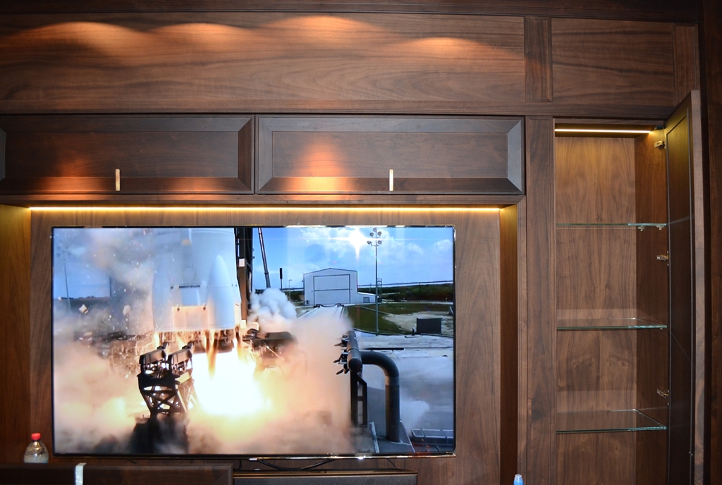 Для того чтобы достичь эффекта равномерного освещения использовались светодиодные ленты smd 3528 120 светодиодов и 60 светодиодов на один метр. Также стоит отметить, что определенная часть ленты устанавливалась в накладной профиль (анодированный) MIC-2000. Данный профиль, имеющий матовый экран, обладает прозрачностью до 70%.