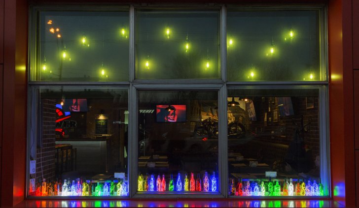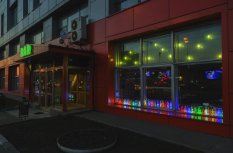 Основной задачей проекта было создание оригинального светового декора, который был бы виден с улицы даже в солнечный день. Важно, чтобы потенциальным посетителям было сразу понятно, что за витриной находится бар.