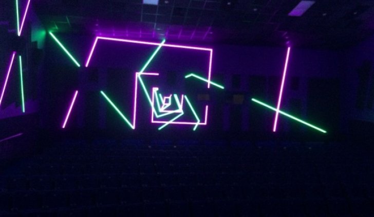 В кинотеатре ТРЦ SBS MegaMall г. Краснодара с помощью оборудования Arlight была выполнена декоративная подсветка стен. Световые линии розового и салатового цветов на площади нескольких стен складываются в причудливые геометрические узоры, давая достаточно света, но при этом не мешая просмотру фильмов. Светодиодные ленты размещены внутри алюминиевых профилей и закрыты сверху матовыми рассеивающими экранами.