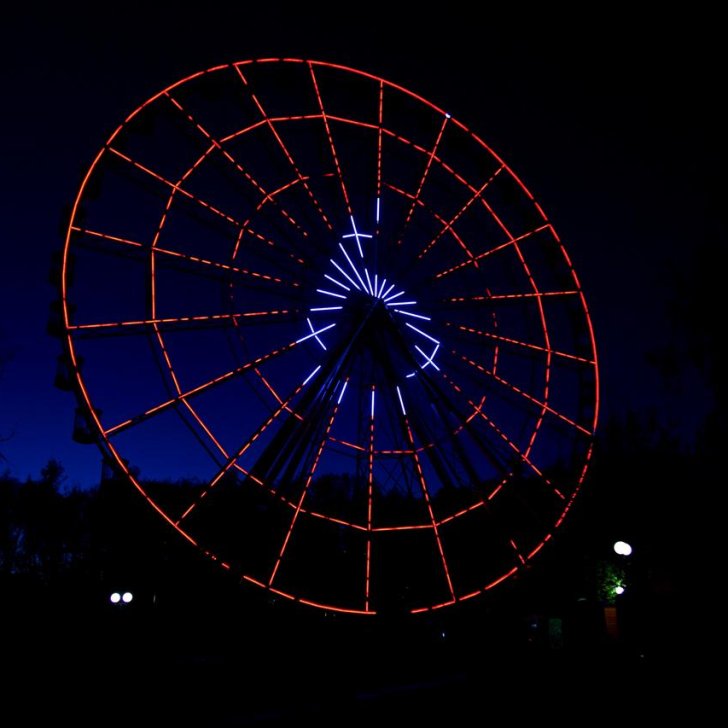 Светодиодное оборудование Arlight использовано в системе динамической светодиодной подсветки колеса обозрения в парке Кырлай города Казань. Для создания подсветки было применено около 10000 светодиодных флэш-модулей Arlight ARL-D30-3LED-2811 RGB 12V.