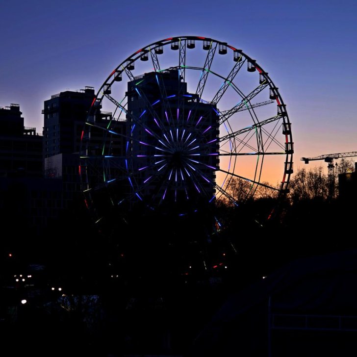 Создание системы динамической светодиодной подсветки колеса обозрения в парке Кырлай города Казань.