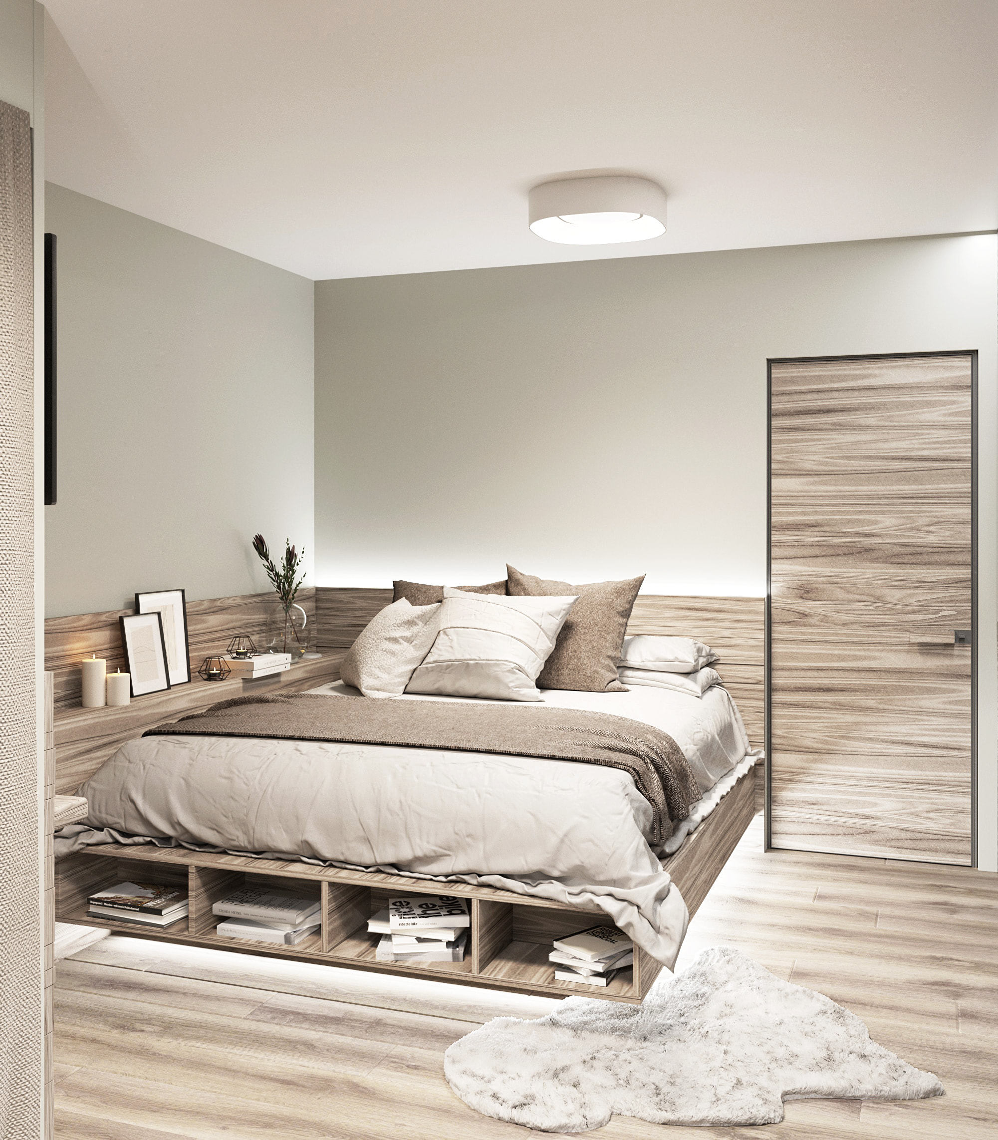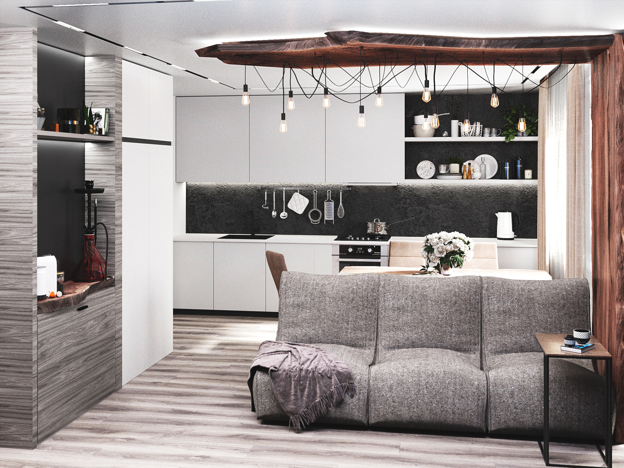 Дизайн-проект отличается рациональным подходом, где применение экологически чистых материалов полностью отражает характер владельца квартиры — чемпиона РФ по женскому футболу Марии Сурниной. Основной задачей было создать удобное пространство, в котором присутствуют все необходимые элементы для полноценной жизни, начиная от коммуникаций и заканчивая зоной релакса.