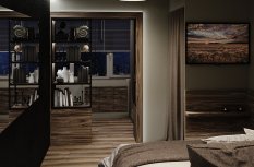 Светодизайн проекта олицетворяет современные решения: точечные споты для акцентной подсветки, магнитные треки, окружающие всю периметр для основного освещения, а также стильные дизайнерские светильники. Световые ленты с использованием светодиодов применяются для подсветки штор, мебели и декоративных элементов, придают общему интерьеру легкие световые штрихи и выделяются на общем фоне. В результате создано комфортное световое пространство, в котором приятно и уютно находиться длительное время.