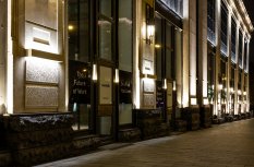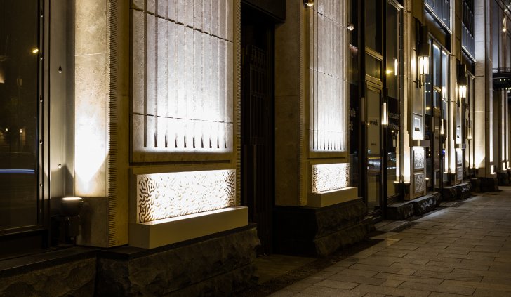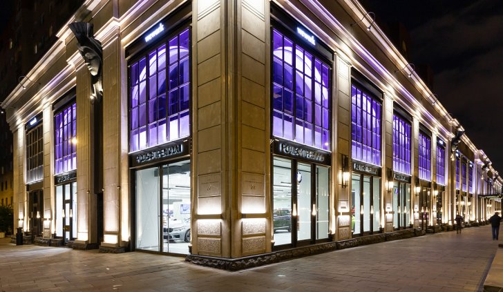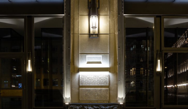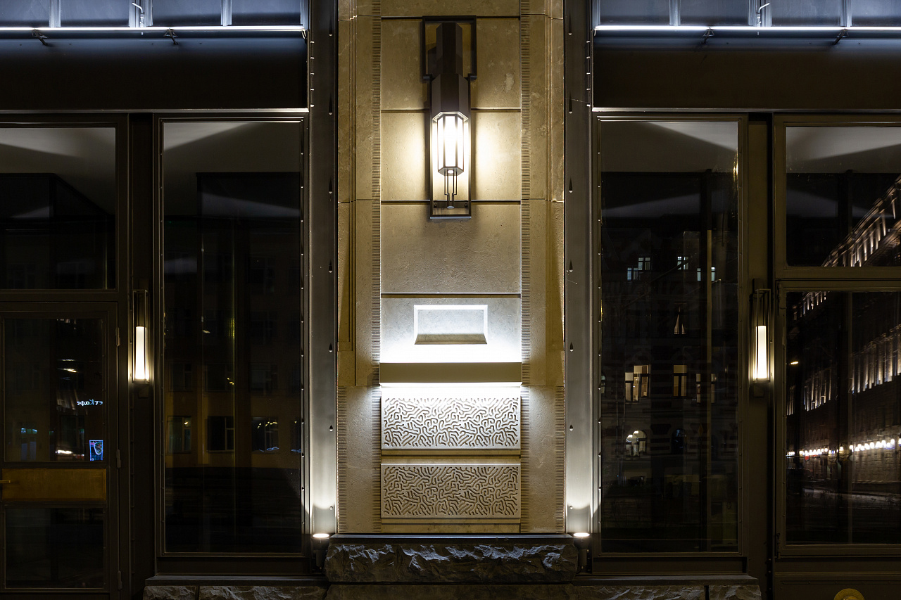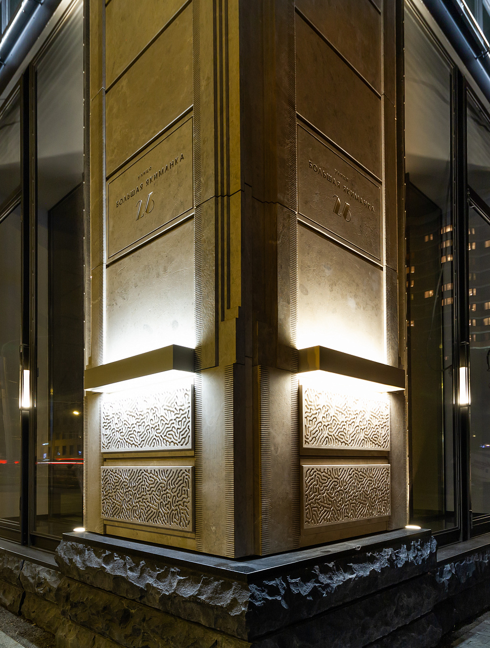 Архитектурное освещение ТЦ "Большая Якиманка" в вечернее время создаёт праздничное настроение и выгодно подчёркивает статусный облик здания. Светодиодная подсветка, оформленная в алюминиевые профили с матовыми экранами сверху и снизу, акцентирует внимание на разнообразии фактуры стен, а также выполняют вспомогательную роль в качестве уличного освещения.