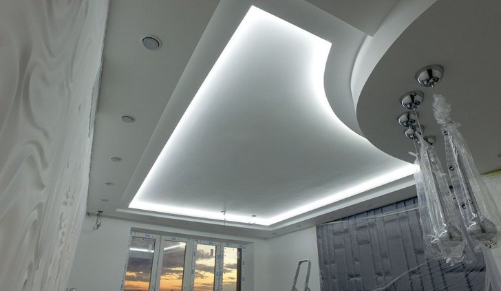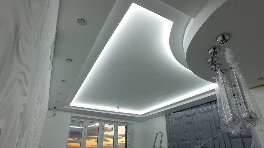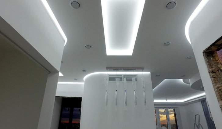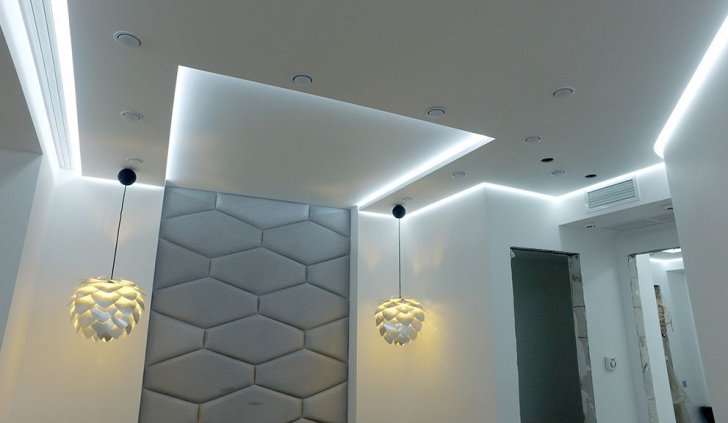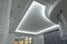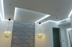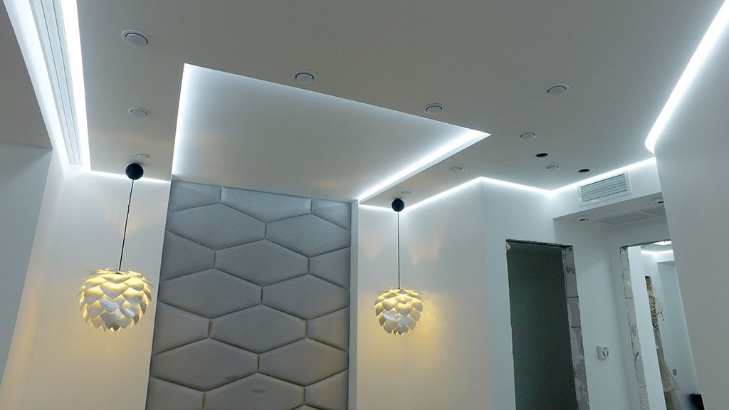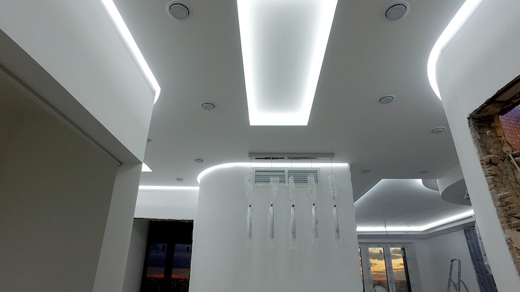 Пожеланием хозяев квартиры было создание мягкого фонового освещения, комфортного и достаточного в большинстве случаев. Дизайн-проект предполагал многочисленное количество потолочных ниш, в которых и была размещена светодиодная лента, в соответствии с поставленной задачей.