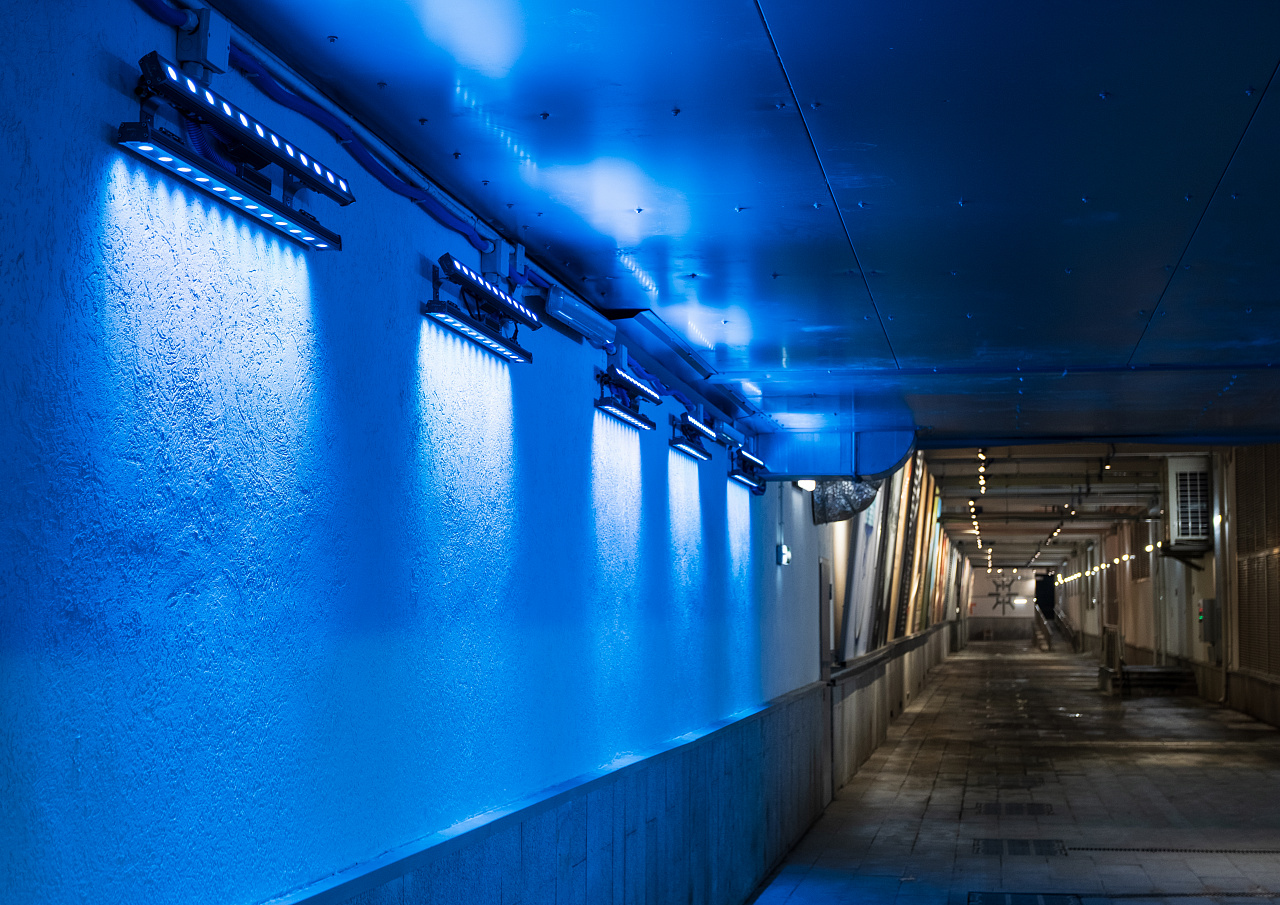 В Северном тоннеле, который изначально был техническим проходом, а в итоге стал полноценным концептуальным выставочным пространством, освещение реализовано с помощью продукции Arlight.