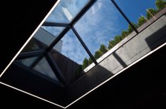 Стекло, металл, бетон - здесь все лаконично, стильно, решительно. Яркие световые линии четко формируют геометрию помещений, создают световые тоннели, как порталы для перемещения в пространстве.