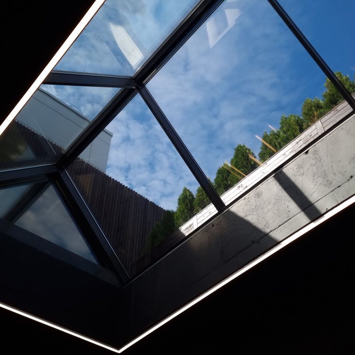 Для создания световых линий были использованы светодиодные лента серий RTW и RT, профили WPH и SL-LINE с аксессуарами, для питания - блоки серий ARPV-UH и ARPV-LV.