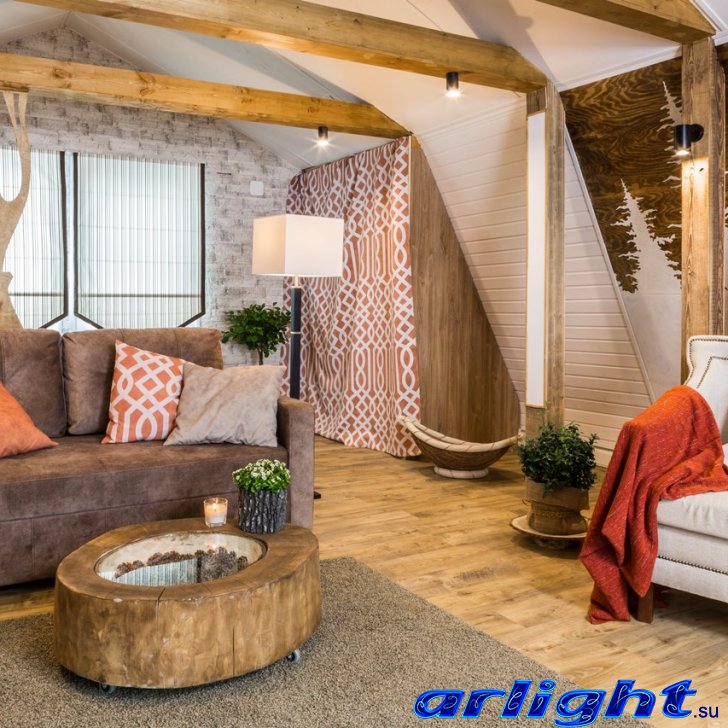 Компания Arlight принимала участие в одной из программ "Фазенда". Дизайнеры разработали проект тематической гостиной на мансардном этаже, в которой главным героем стал Лес.