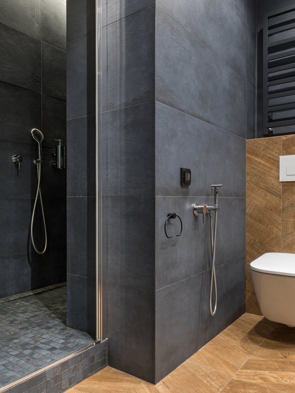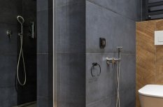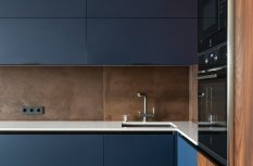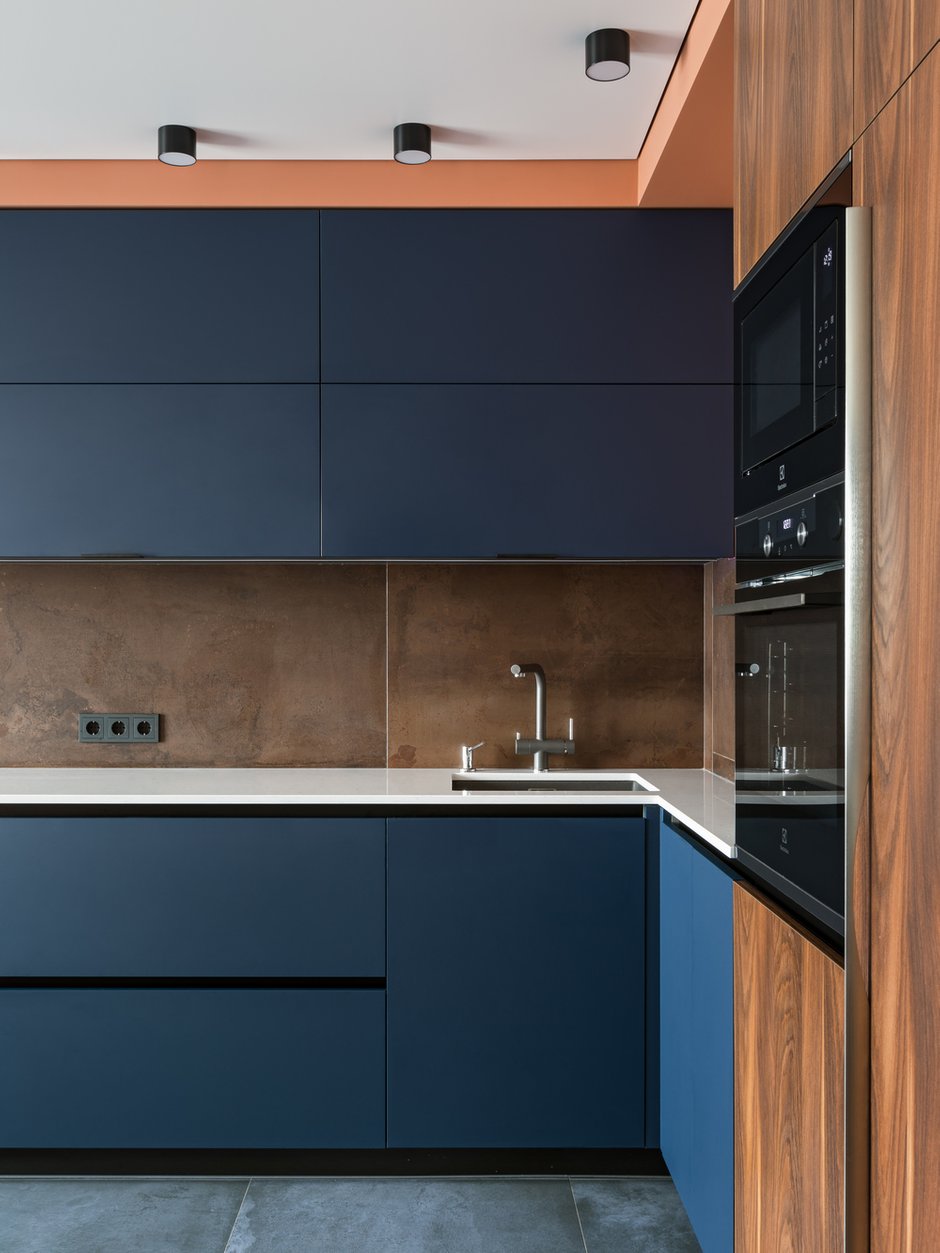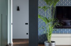 Особое внимание привлекают накладные светильники серии RONDO, выполненные в черном цвете, которые привлекают взгляд на фоне белого потолка. Это необычное решение, так как мы привыкли к встраиваемым даунлайтам. Однако, ярко выраженные корпусы светильников создают рельефность в пространстве и придают ему завершенность. Теперь потолок перестал быть скучным белым полотном. Сначала он удивляет, затем впечатляет своей оригинальностью, и, в конечном итоге, становится понятно, насколько это решение выглядит органично, интересно и свежо.