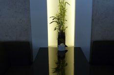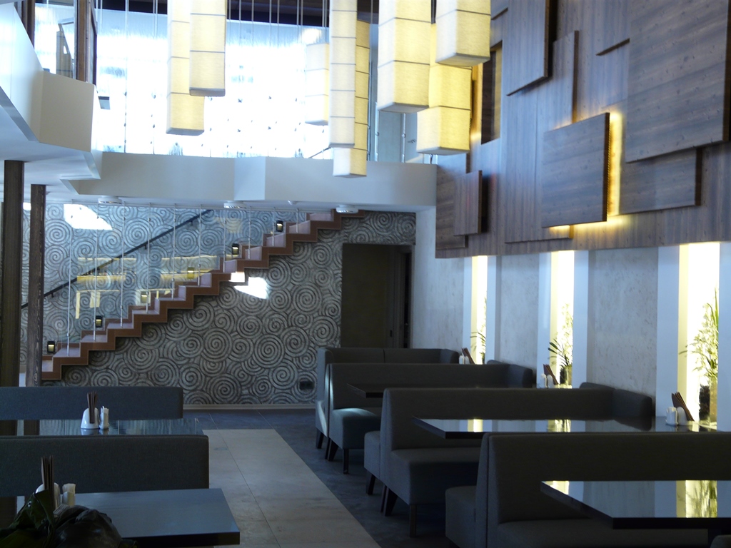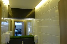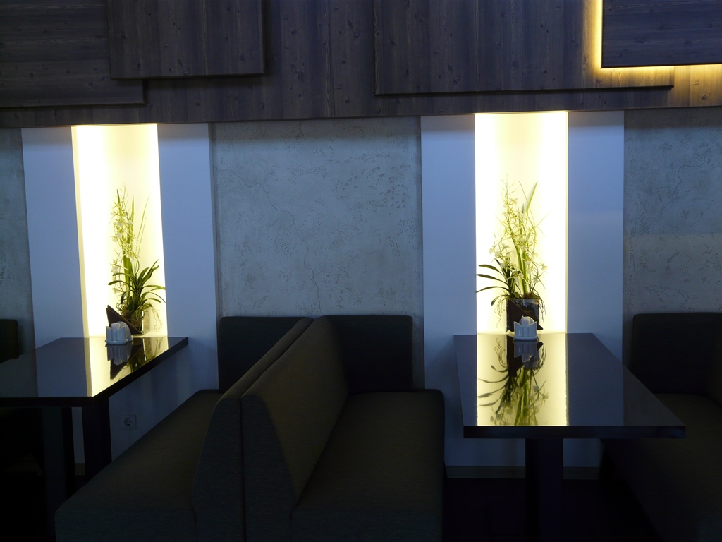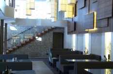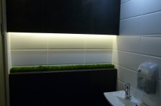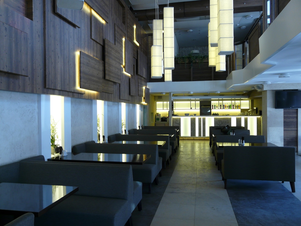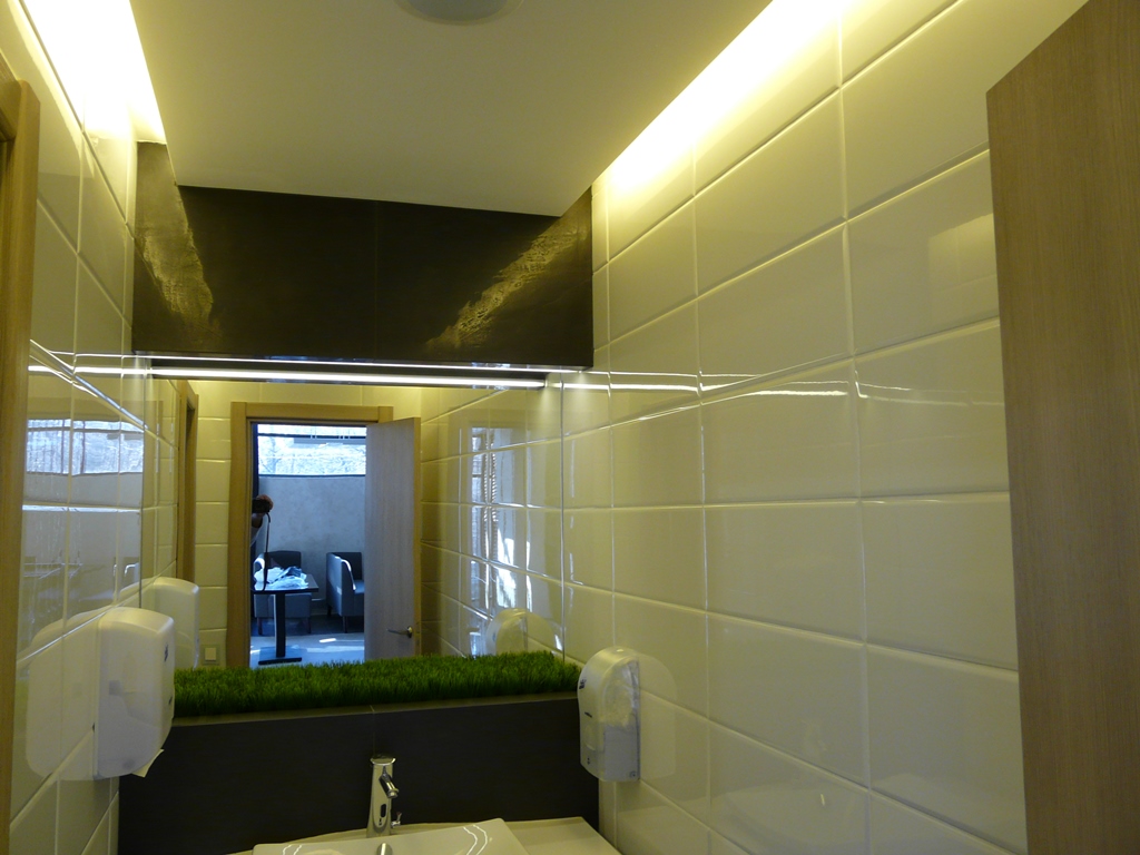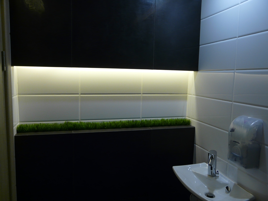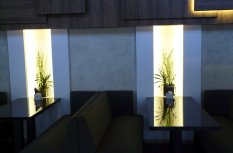 Освещение в кафе «Легио» (г. Саратов) выполнено с использованием светодиодных лент и другого осветительного оборудования от Arlight. Во многих деталях используется светодиодное освещение, начиная от вывески с названием и логотипом, заканчивая внутренними основными и дополнительными элементами. Элементы освещения есть везде: на потолке расположены оригинальные люстры, на лестнице – точечные светильники, а над столиками – дополнительная подсветка. Световое оборудование, используемое в оформлении саратовского кафе «Легио», изготовлено компанией Arlight.