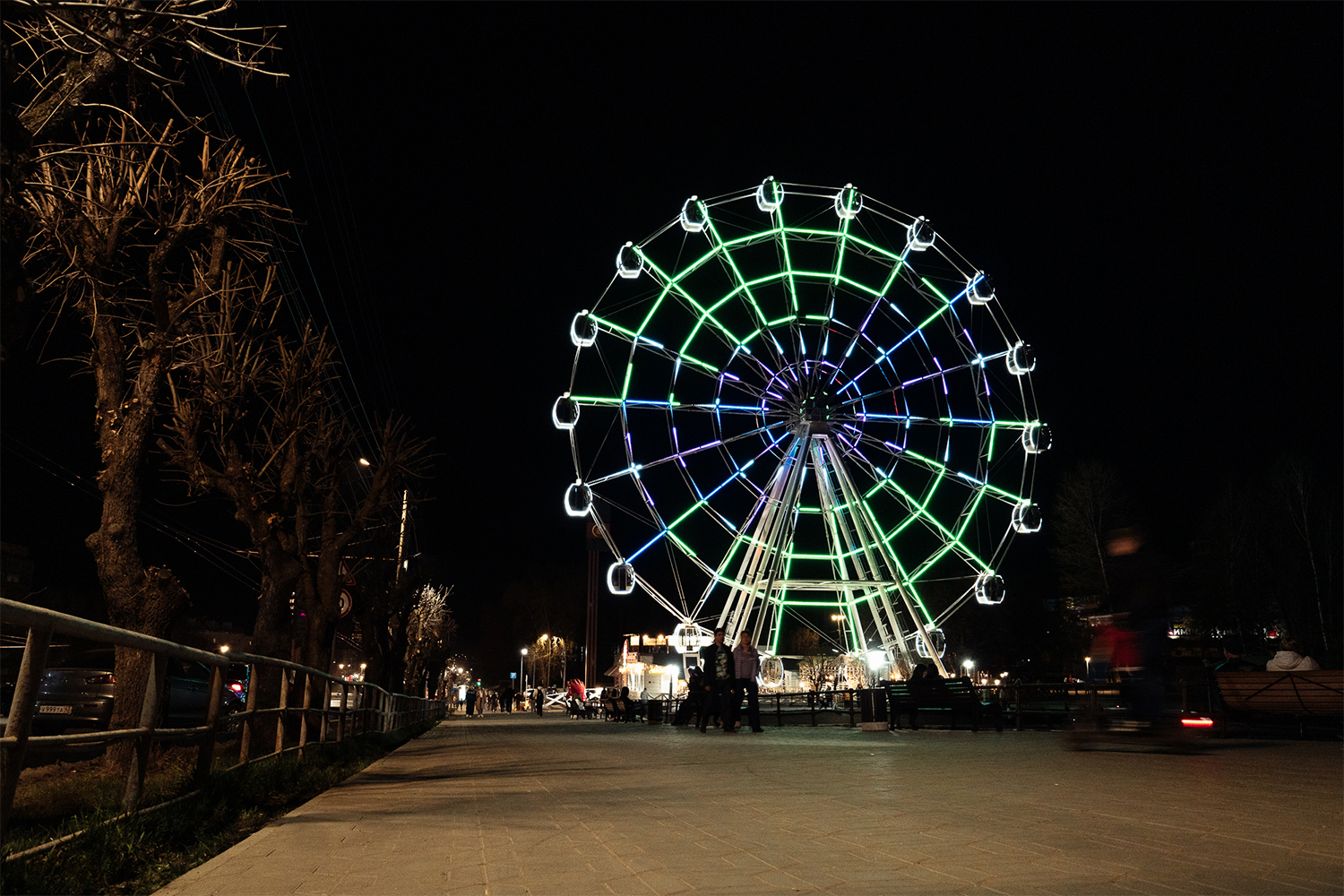 На площади рядом с колесом расположена зона для прогулок: на этих локациях местные жители могут делать красивые и яркие кадры.