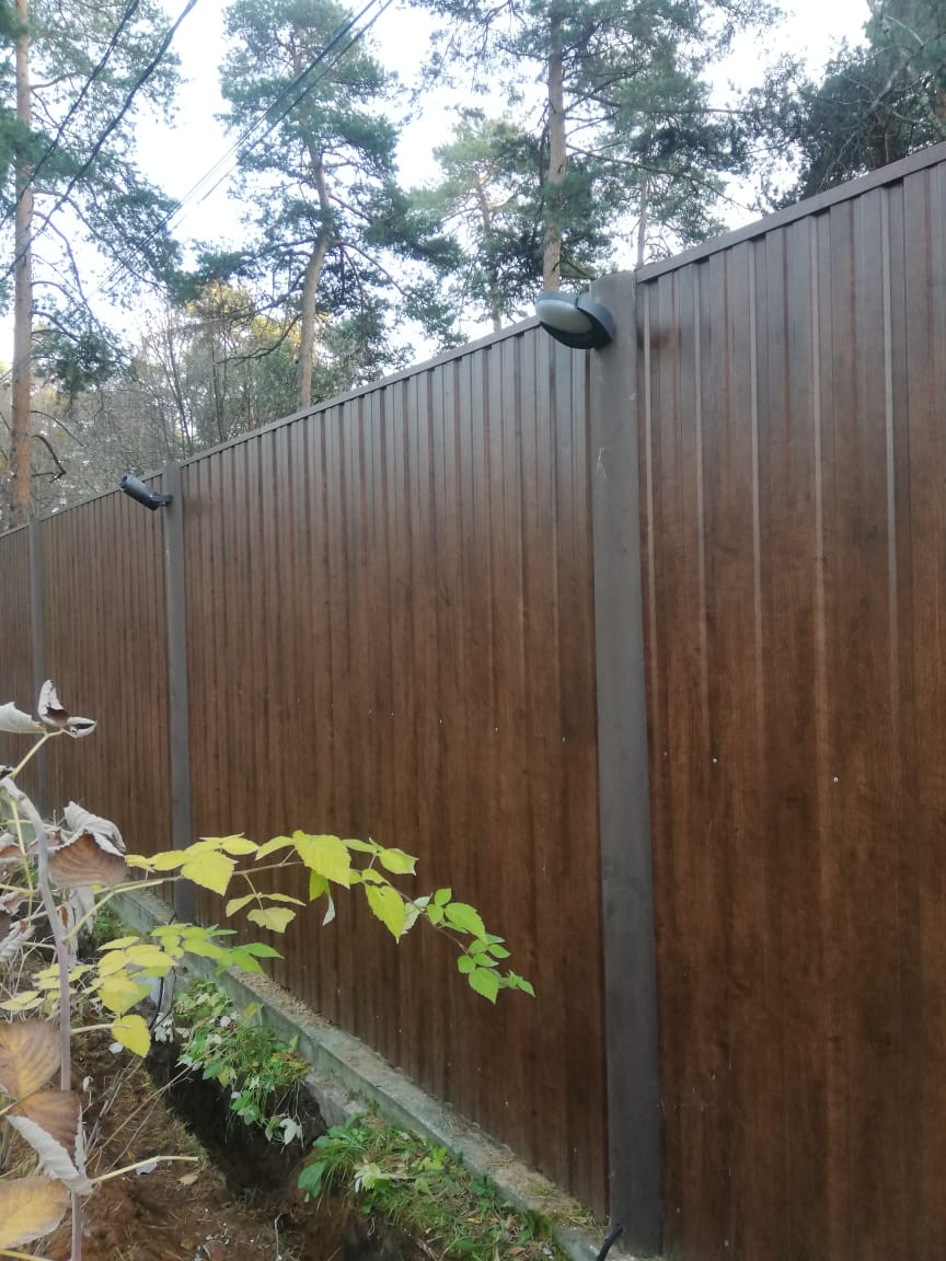 Для обозначения границ участка был установлен накладной светильник LGD-EYE-WALL на ограду. Этот светильник создает заливающую подсветку вокруг ограды, не ослепляя при этом глаза.