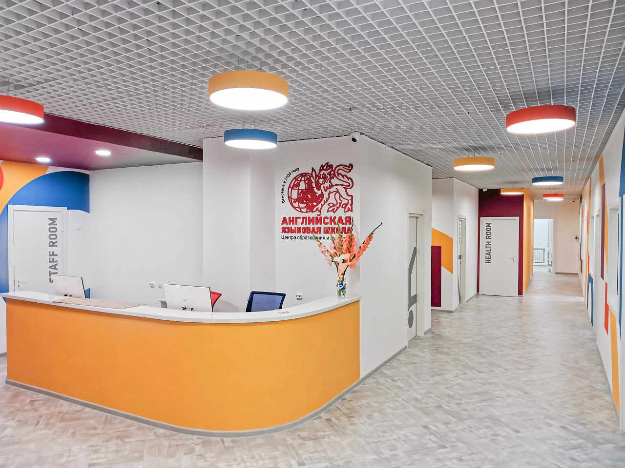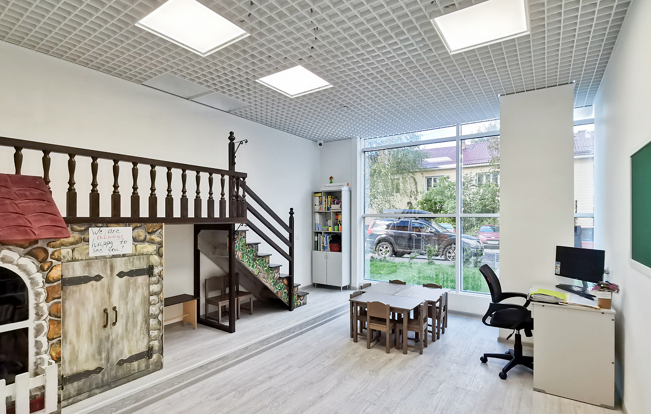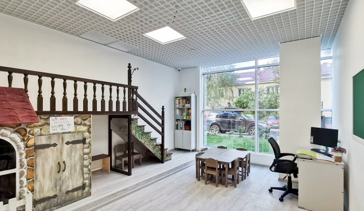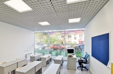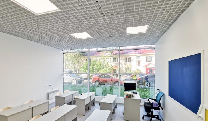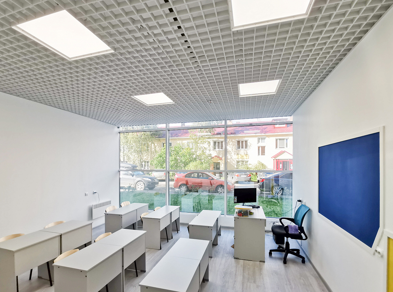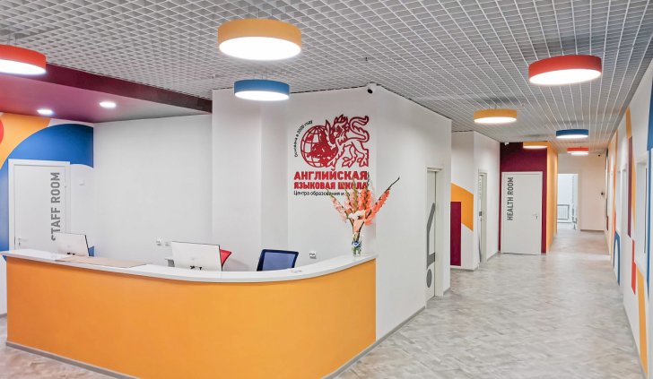 Система освещения в Английской языковой школе города Петрозаводска была осуществлена по всем требованиям и правилам. Для каждого помещения произведен профессиональный светотехнический расчет и, в соответствии с ним, подобраны светильники, максимально отвечающие нормам освещенности в учреждениях образования.