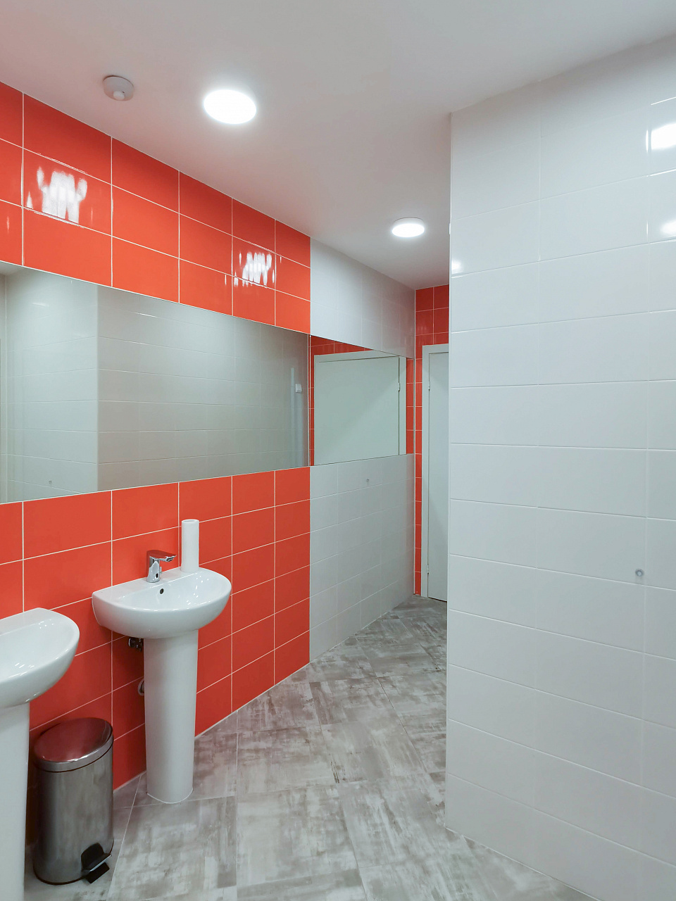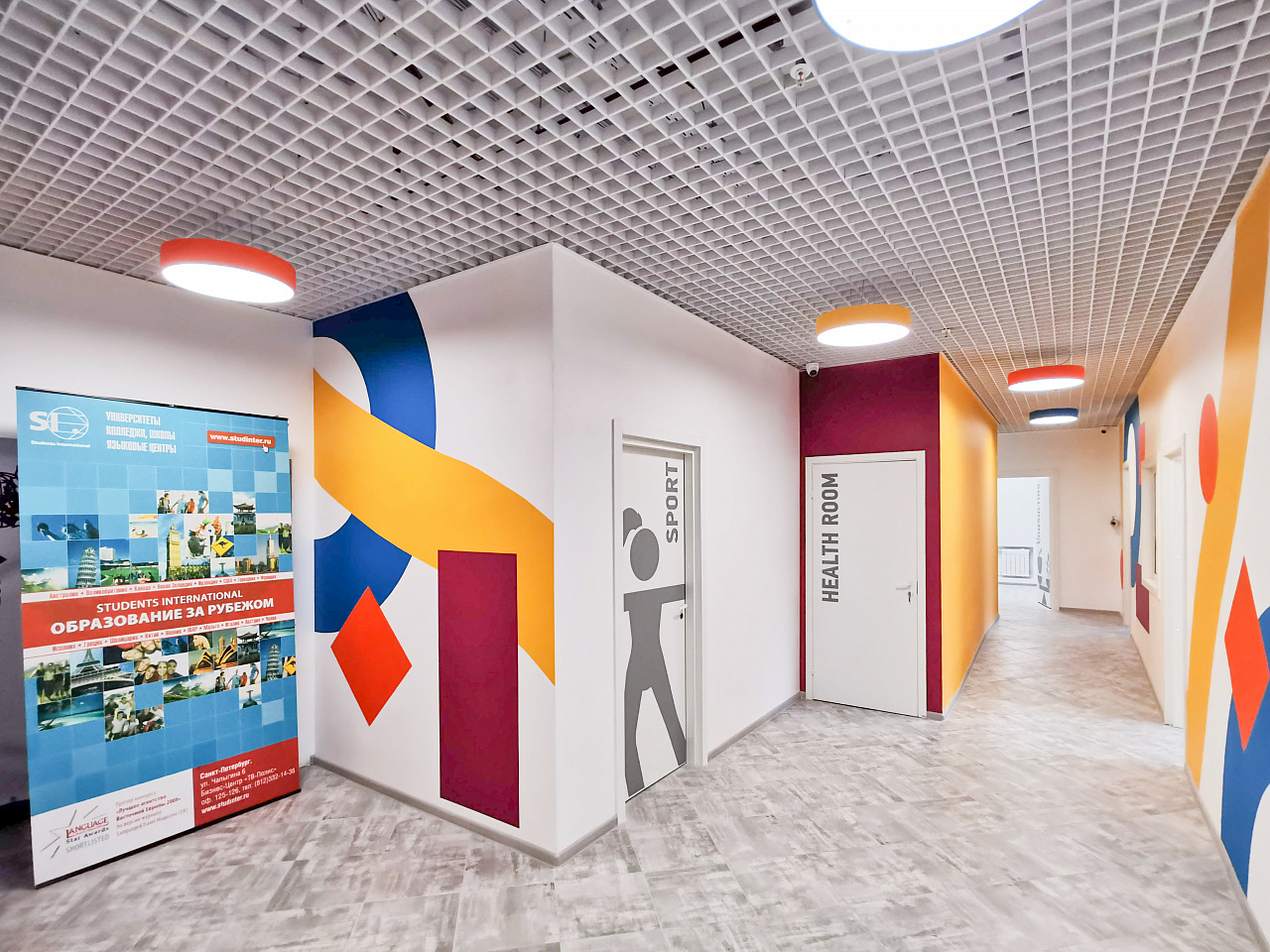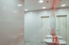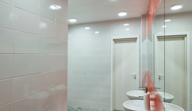 В классах, в спортзале и в холле использованы светильники с дневным белым оттенком свечения, который помогает настроится на рабочий лад, снижает нагрузку на зрение, способствует повышению производительности.