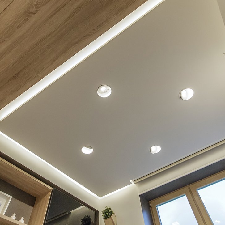 Для этого использовалась светодиодная лента тёплого белого свечения (2700К) высокой яркости со светодиодами smd 5630. Это позволило использовать подсветку в качестве фонового освещения.