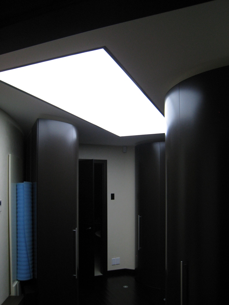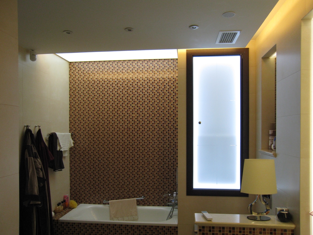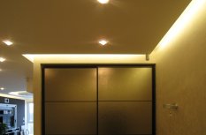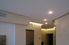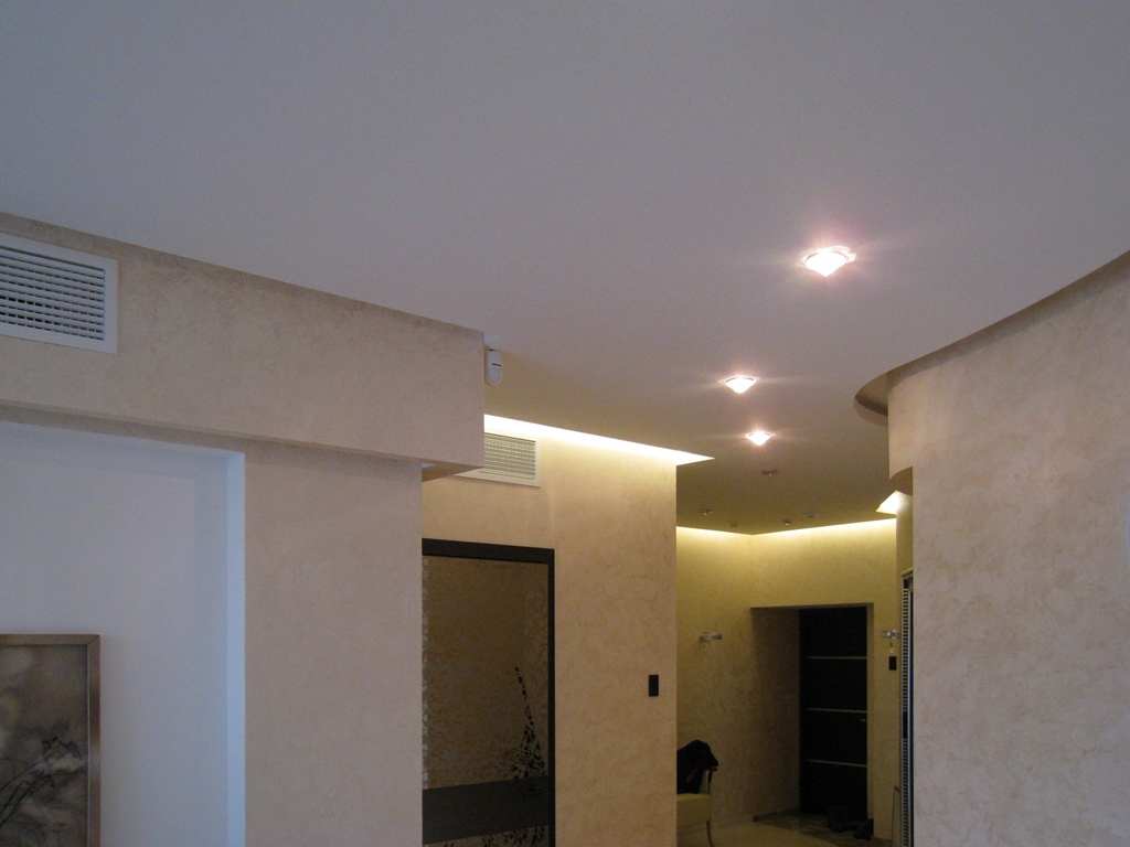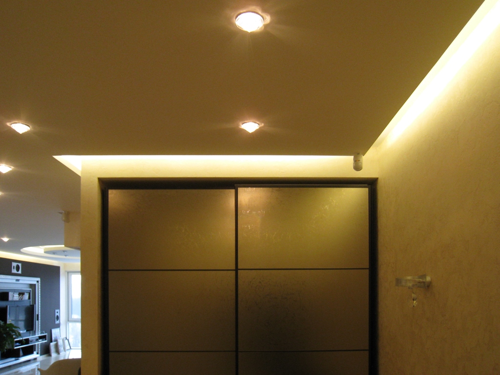 Этот проект открывает новые возможности для оформления обычного освещения жилой стандартной квартиры. Помещения внутри квартиры, то есть жилые комнаты, не имеют основного источника света. Хорошее освещение достигается за счет использования закарнизной подсветки и витражных потолков, пропускающих свет. Вся подсветка организована с использованием светильников Arlight и светодиодной ленты этой же фирмы.