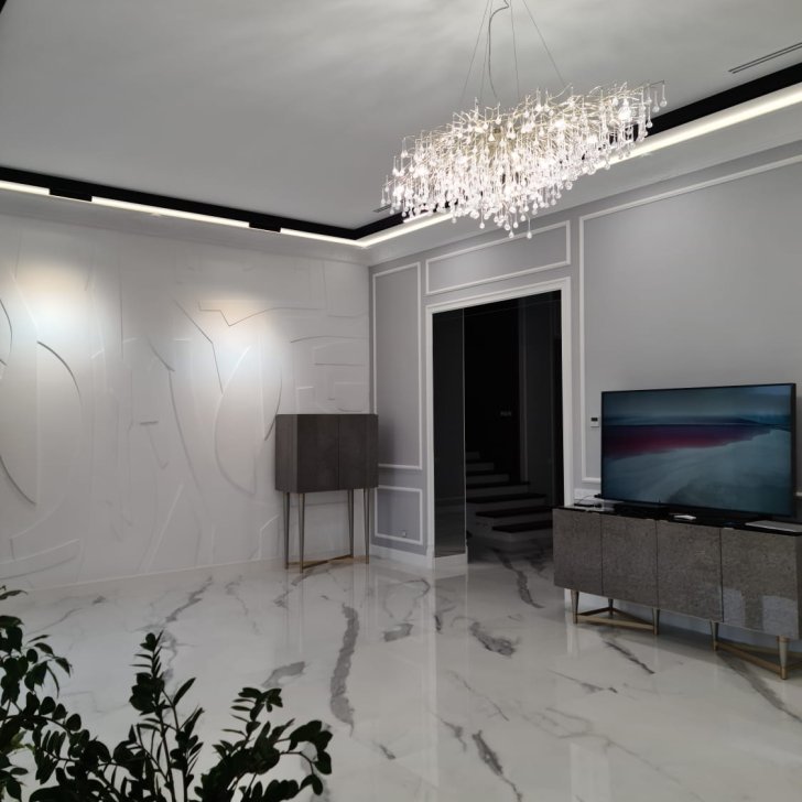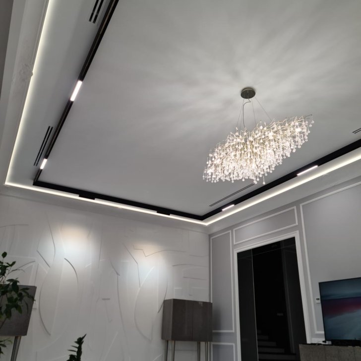 Современное, удобное, стильное освещение, которое впишется в смешенный стиль неоклассики и техно - задача, которую поставил заказчик. В проекте реализованы разные виды освещения: основное, декоративная подсветка, дежурное освещение.