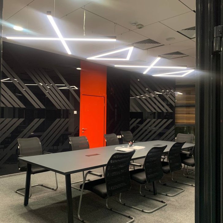 В офисном пространстве линейные светодиодные подвесные светильники разных форм и размеров играют ключевую роль.