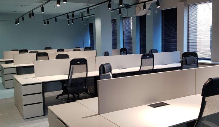 Посетителей и сотрудников офисного центра приветствуют большие круглые потолочные светильники в зоне ресепшена и проходной. Они не только обеспечивают основное освещение, но и создают приятную и неформальную атмосферу.