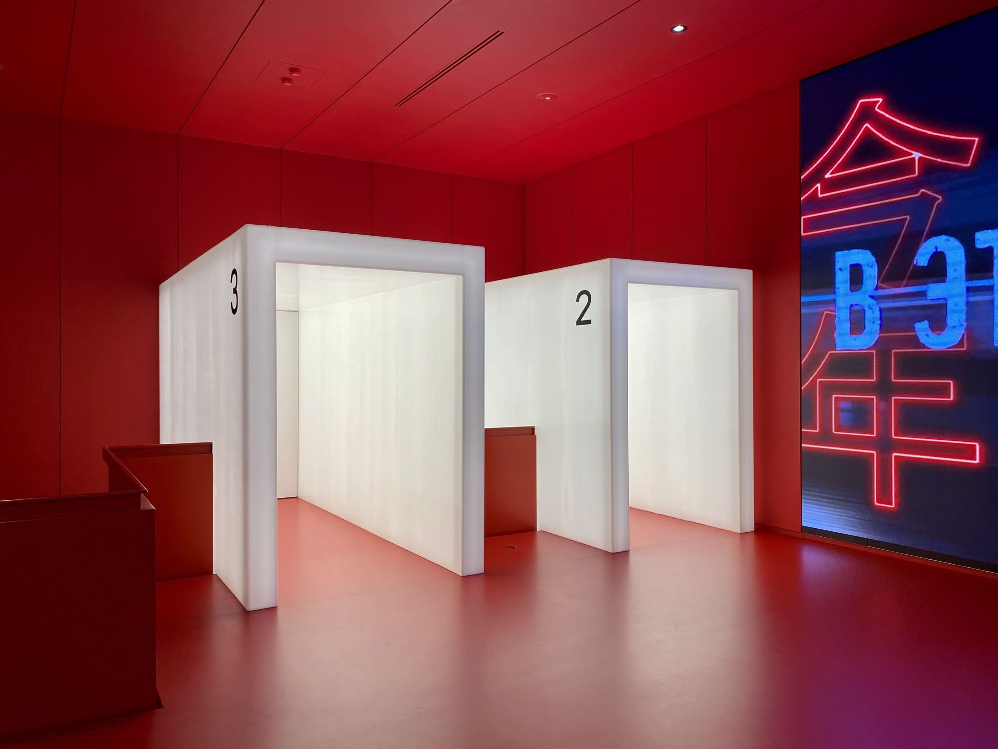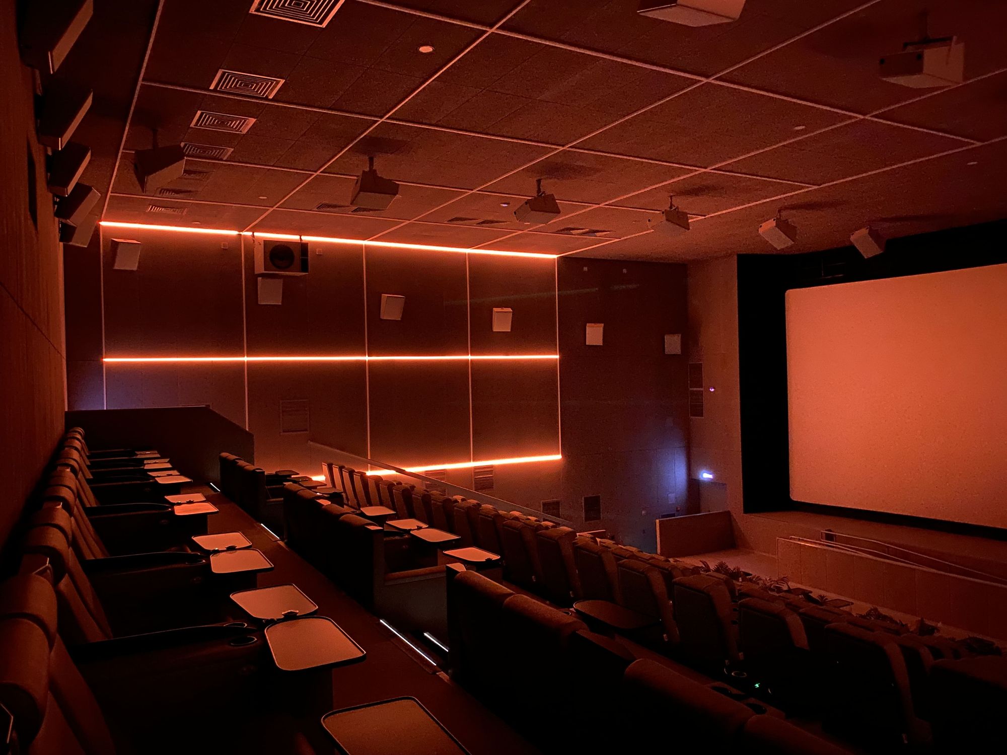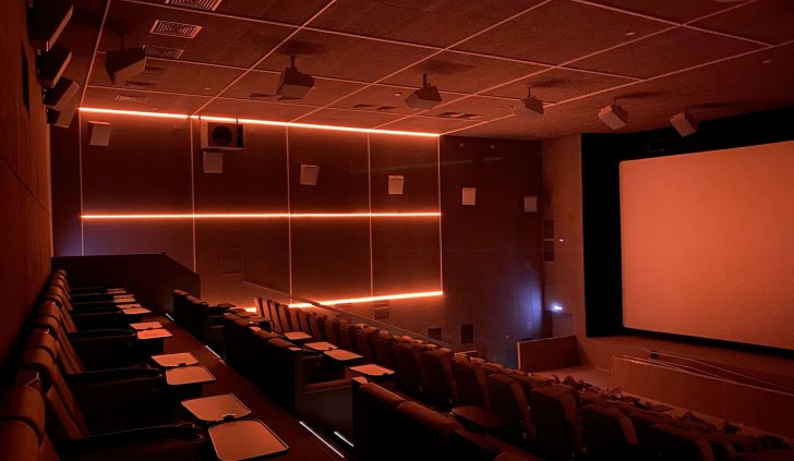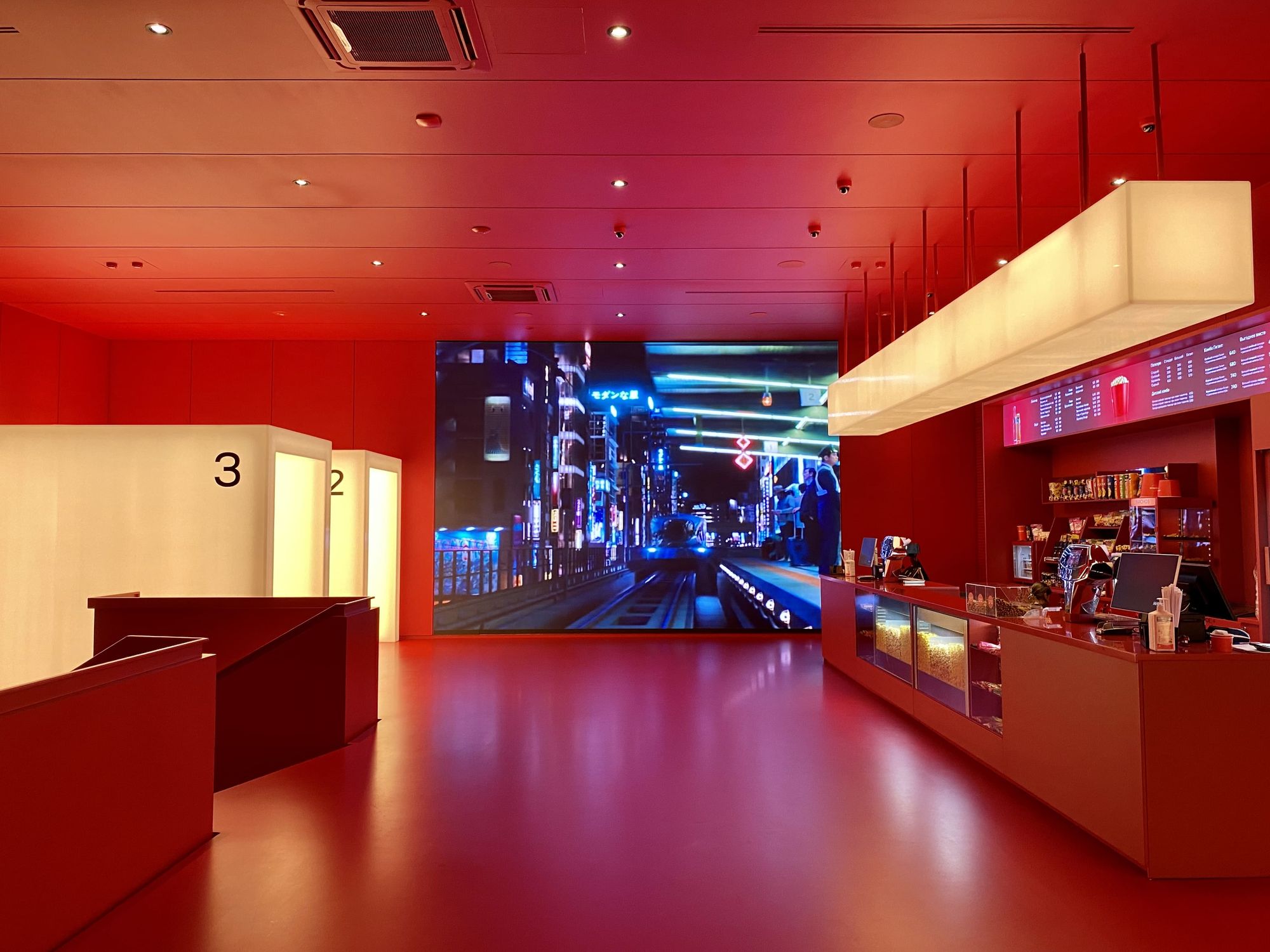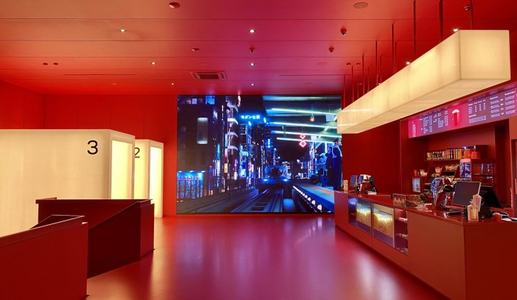 Зона ожидания киносеансов выполнена в красном цвете, а светящиеся белые проходы в кинозалы создают стильный и сюрреалистический эффект на фоне. Это отражает дух артхауса и добавляет особого шарма. Сами кинозалы оборудованы световыми линиями с RGB-лентами, которые способны воспроизводить разнообразные динамические программы. Это еще больше погружает гостей в фантастическую атмосферу кинотеатра и создает неповторимые впечатления.