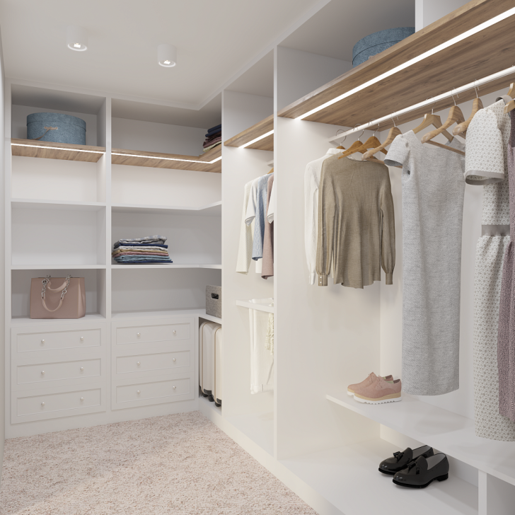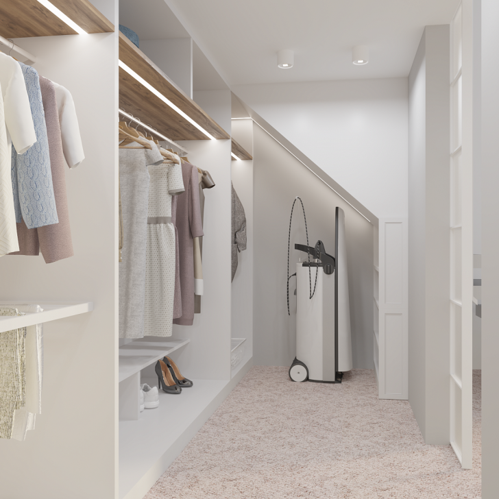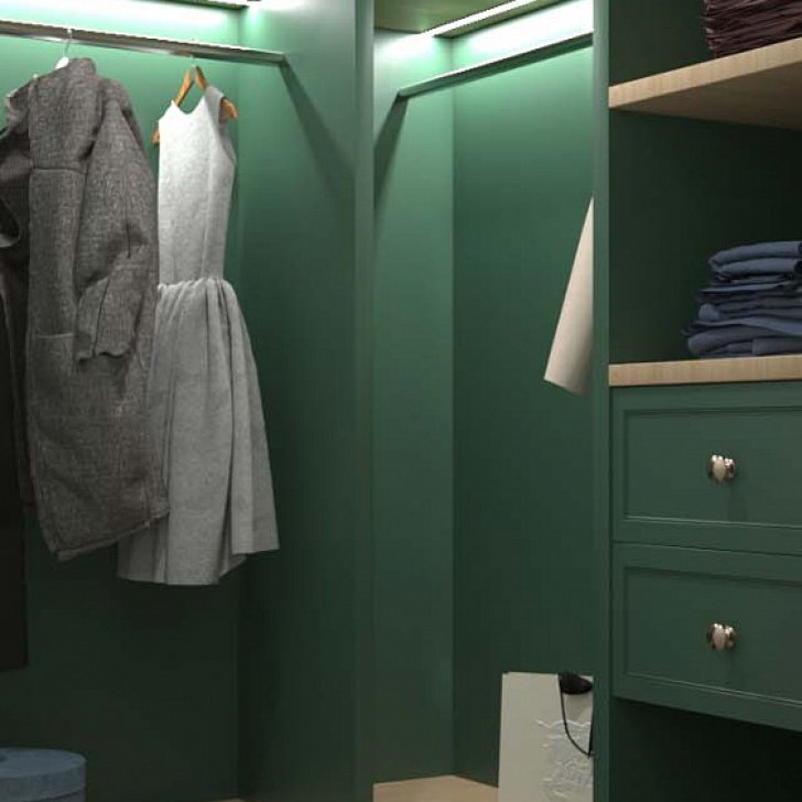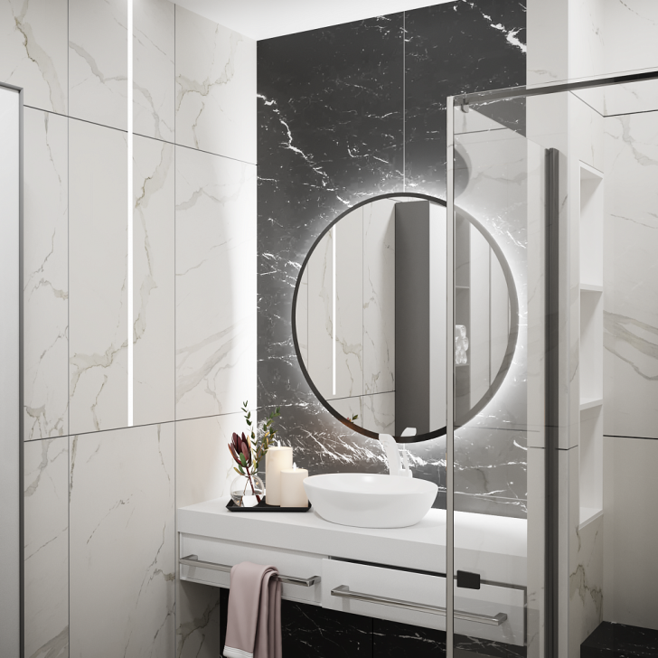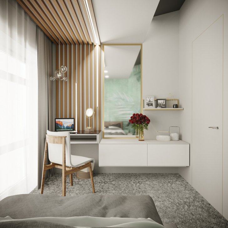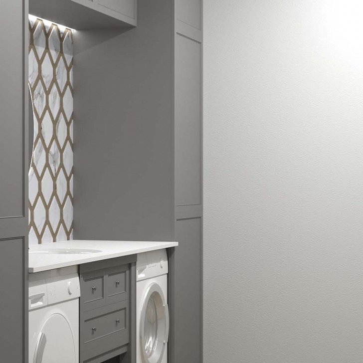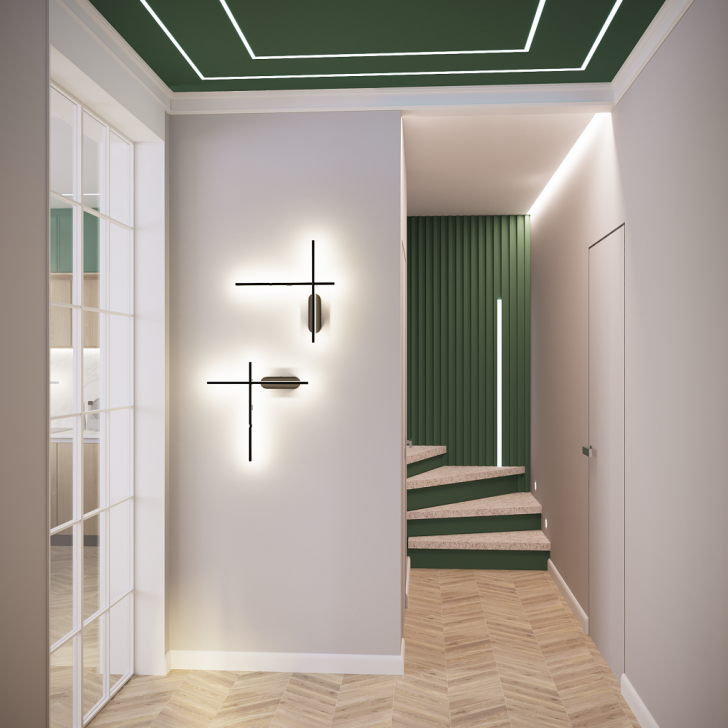 В проекте светлой современной квартиры активно используется светодиодное освещение. Объединяющим элементом помещений становятся световые линии, будто между прочим возникающие на стенах, потолках или мебели почти в каждом пространстве. Такой тип освещения реализуется с помощью особенных встраиваемых профилей и экранов, внутрь которых устанавливается светодиодная лента. Для данного проекта была выбрана лента дневного белого цвета.