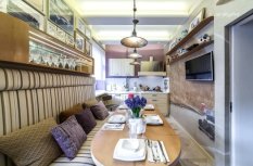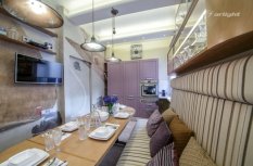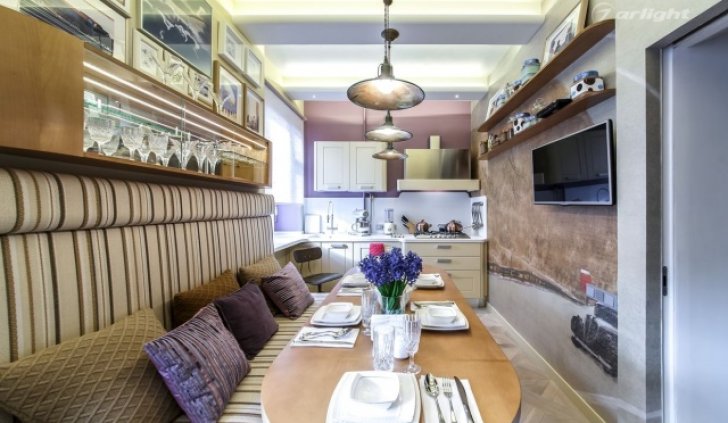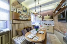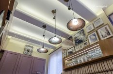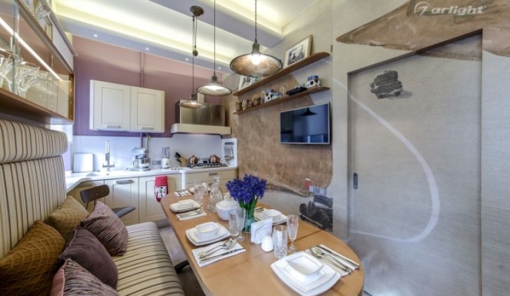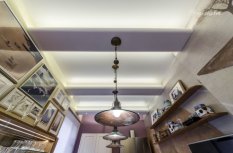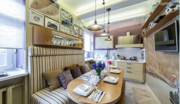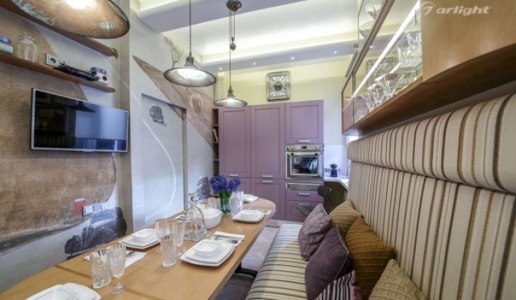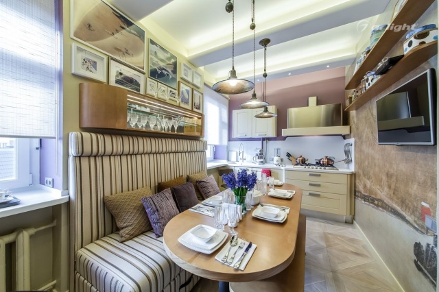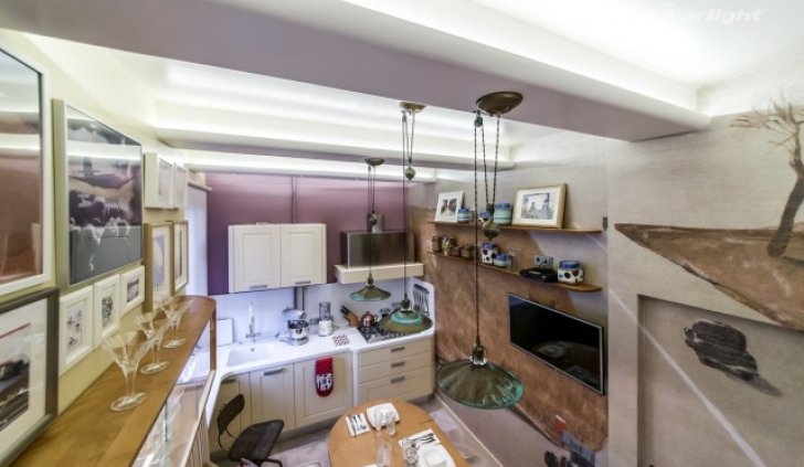 В рамках проекта передачи "Квартирный вопрос" была отремонтирована кухня в сталинском доме, построенном в 1938 году. Одним из акцентов проекта являются подсвеченные светодиодной лентой балки. В помещении была изначально одна балка, которая не вписывалась в концепцию интерьера, но дизайнеры решили не опускать потолок, а добавить ещё несколько балок и превратить конструктивные особенности в "фишку" интерьера.