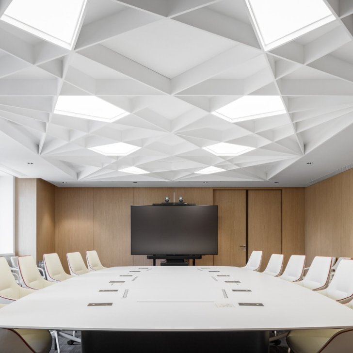 Непринужденная атмосфера геометрического дизайна откликается во всех зонах офиса.