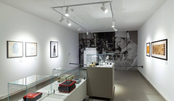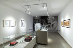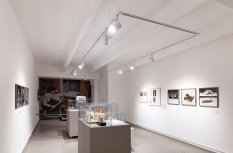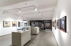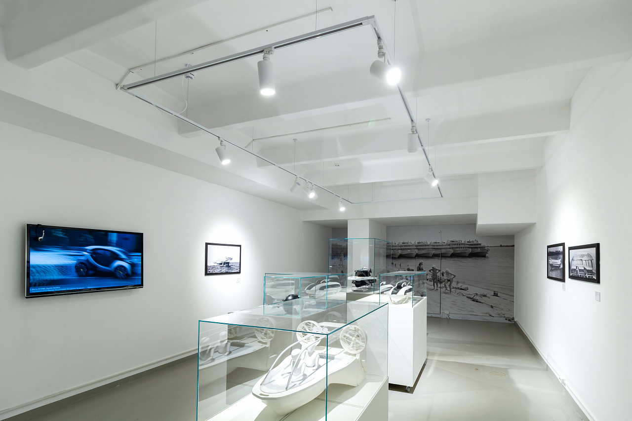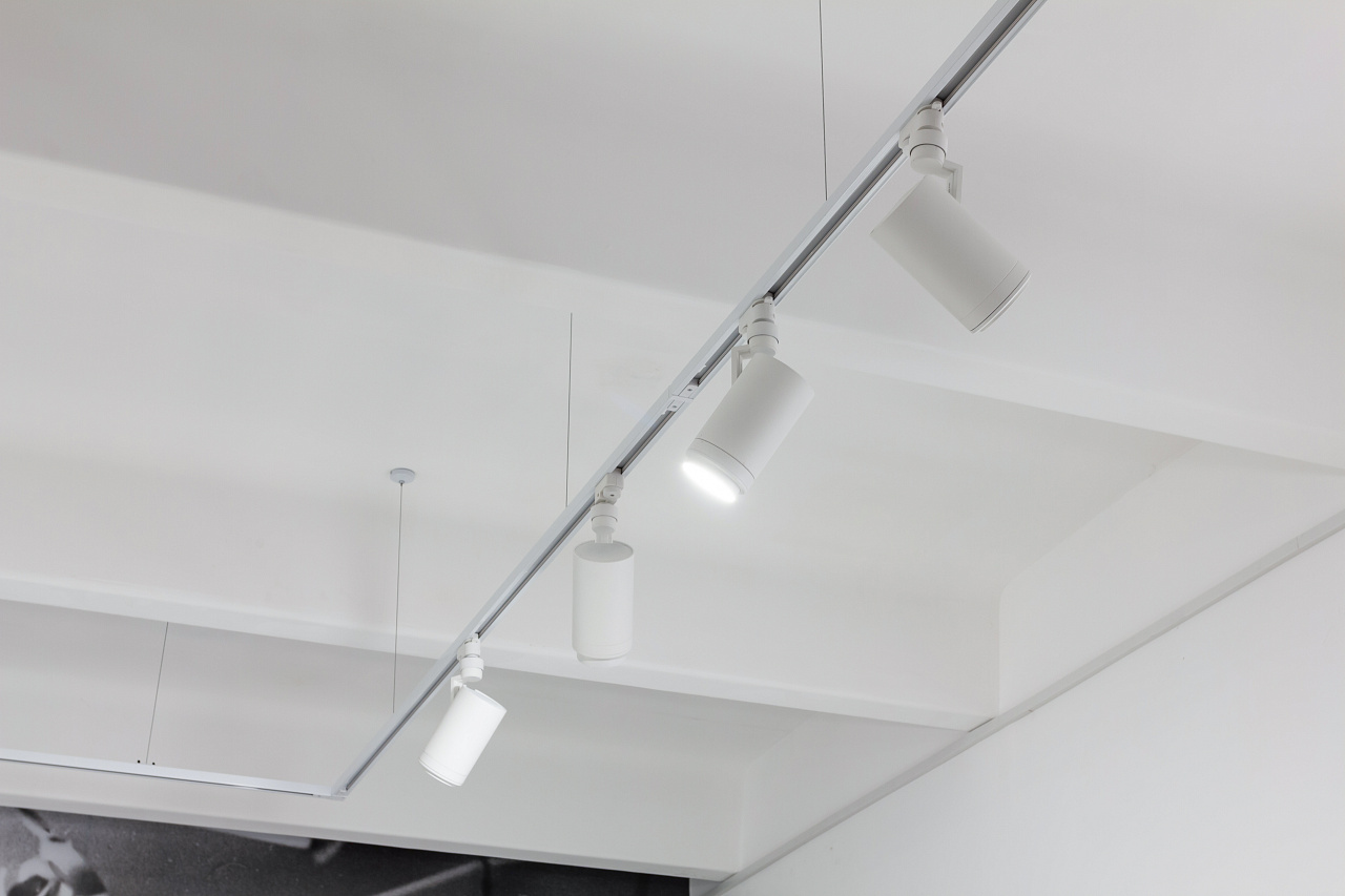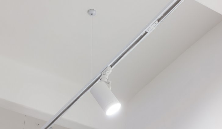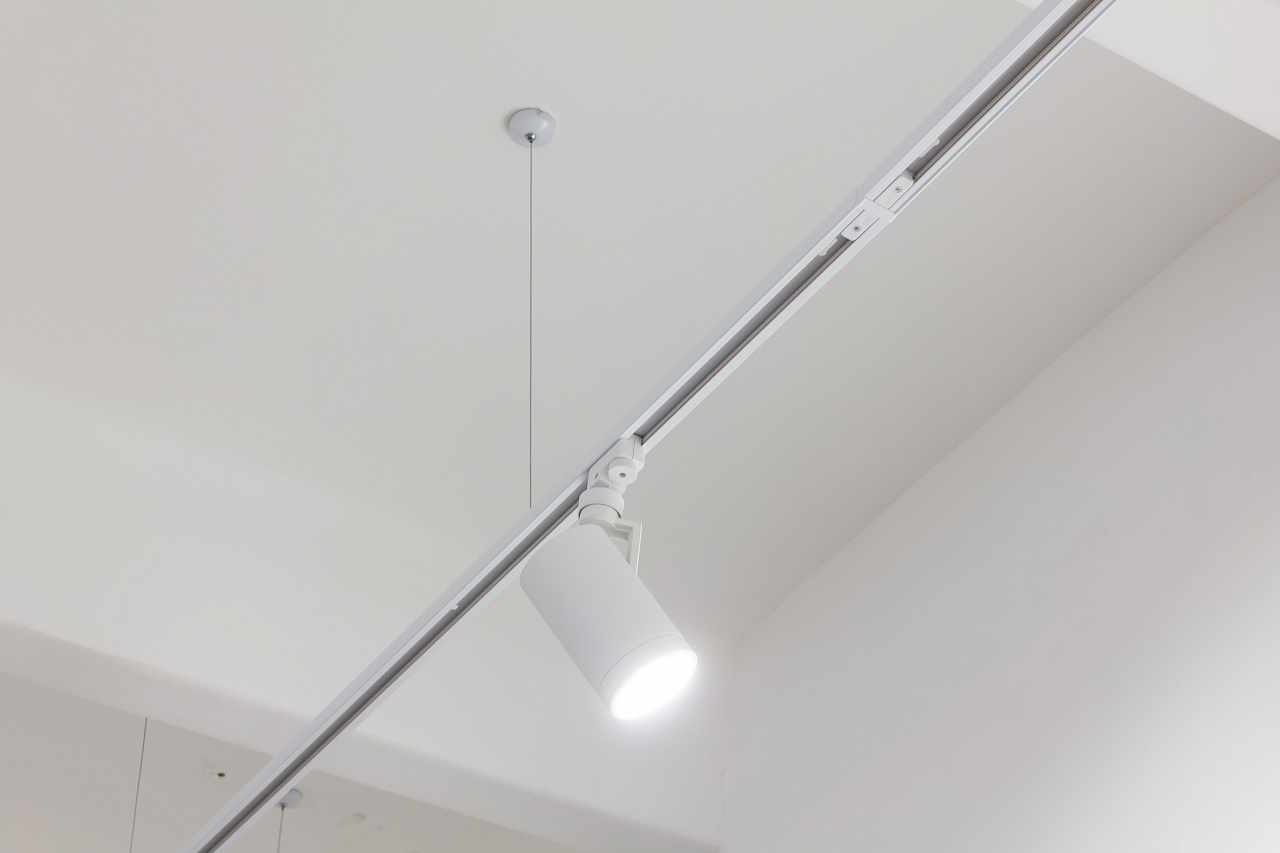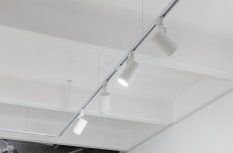 В любом выставочном пространстве важно обеспечить достаточное освещение демонстрируемых объектов. С этим прекрасно справляются трековые светильники на подвесной шине. Подвижность и возможность менять направление света, делает данную конструкцию универсальным решением. Белый цвет шины и светильников, совпадающий с цветом стен, не отвлекает на себя внимания от самой экспозиции.