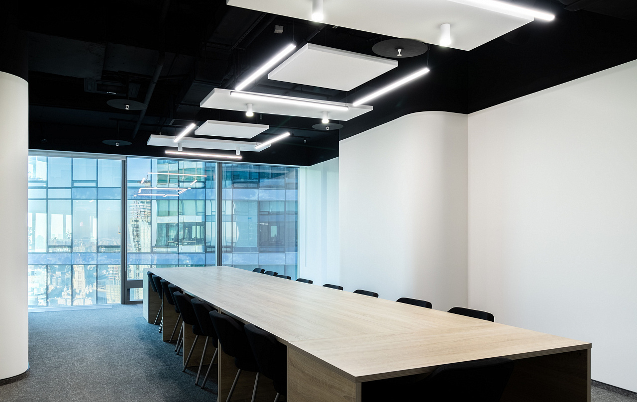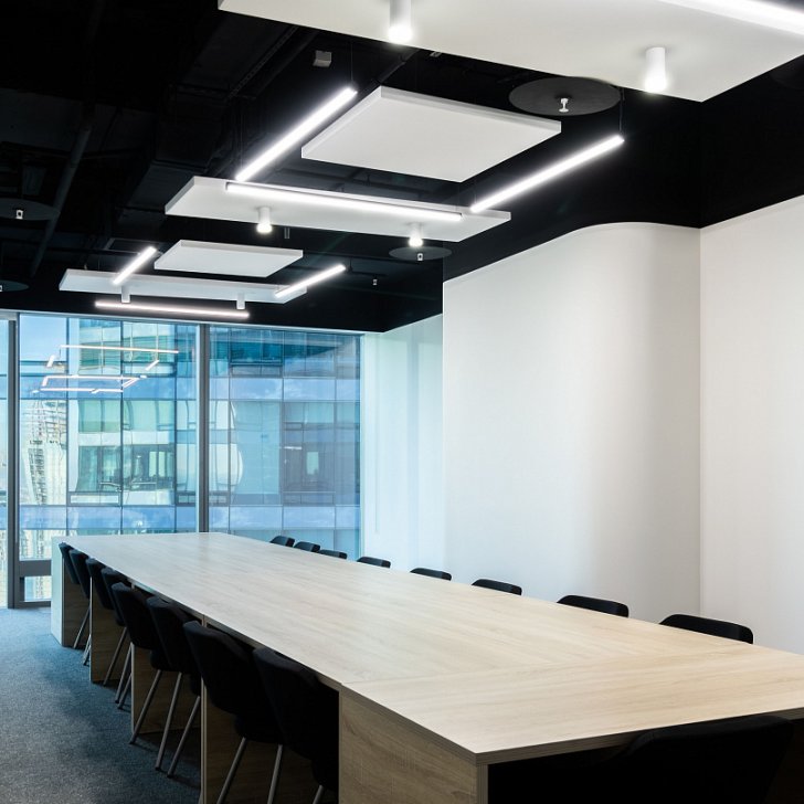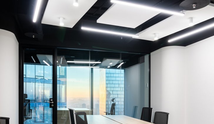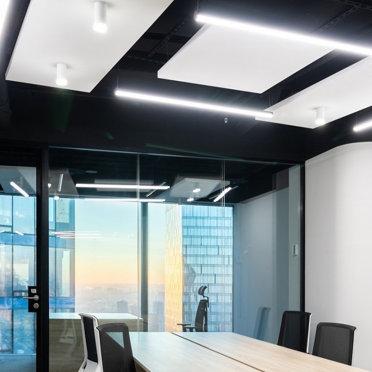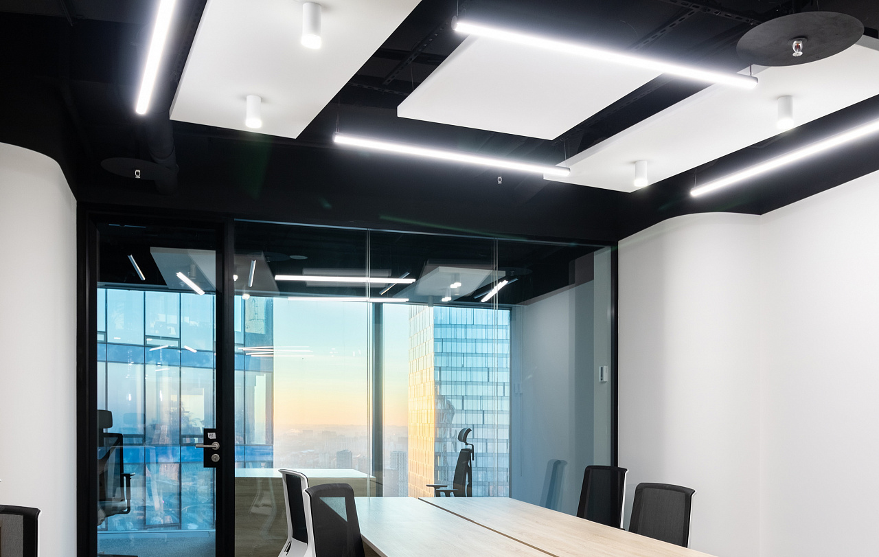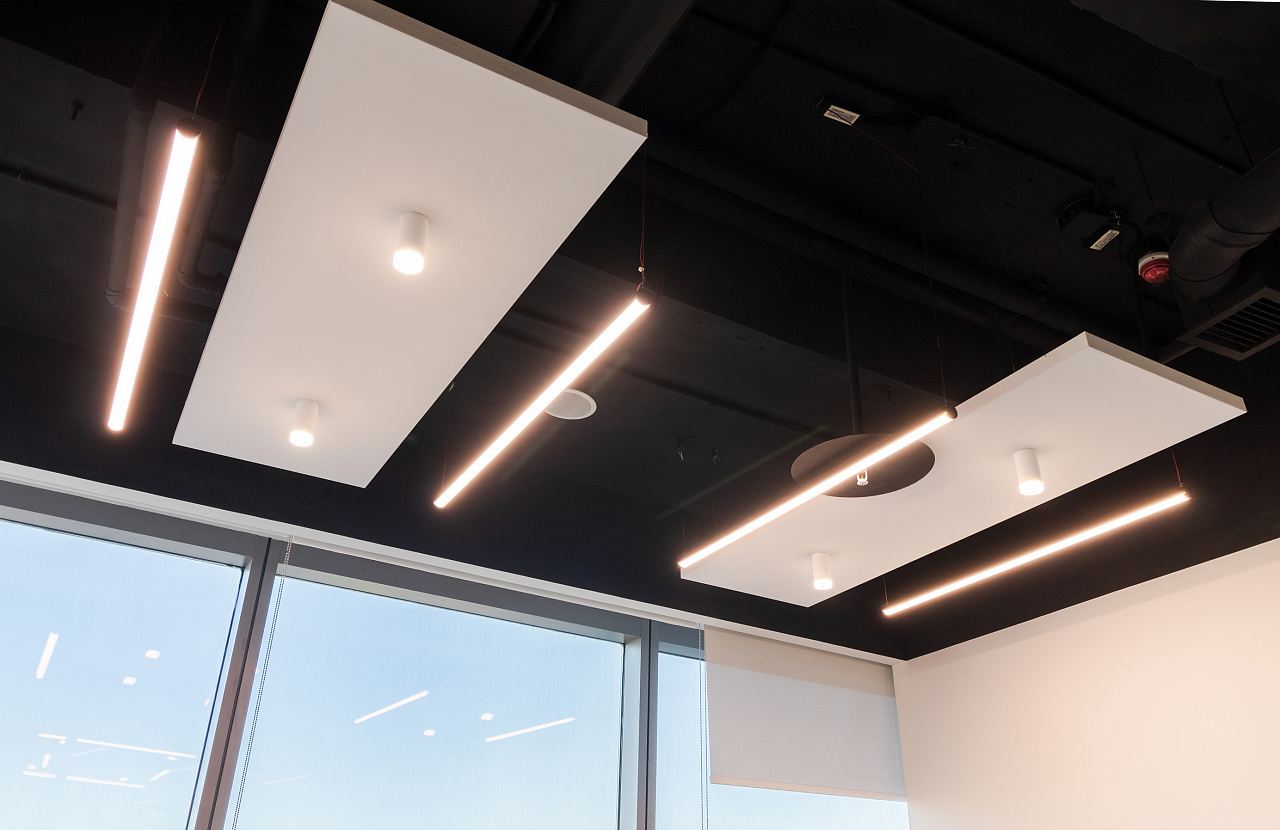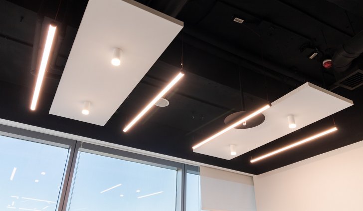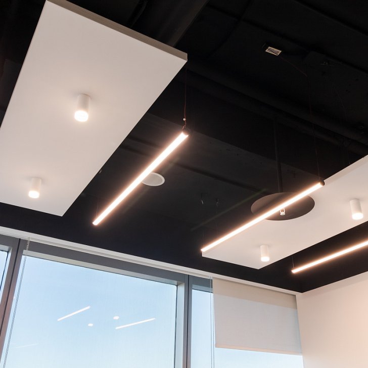 При проектировании была учтена цветовая температура светильников. Так, в зонах для общения и совещаний использовали тёплый белый. В рабочих пространствах, способствующий лучшей концентрации – дневной.