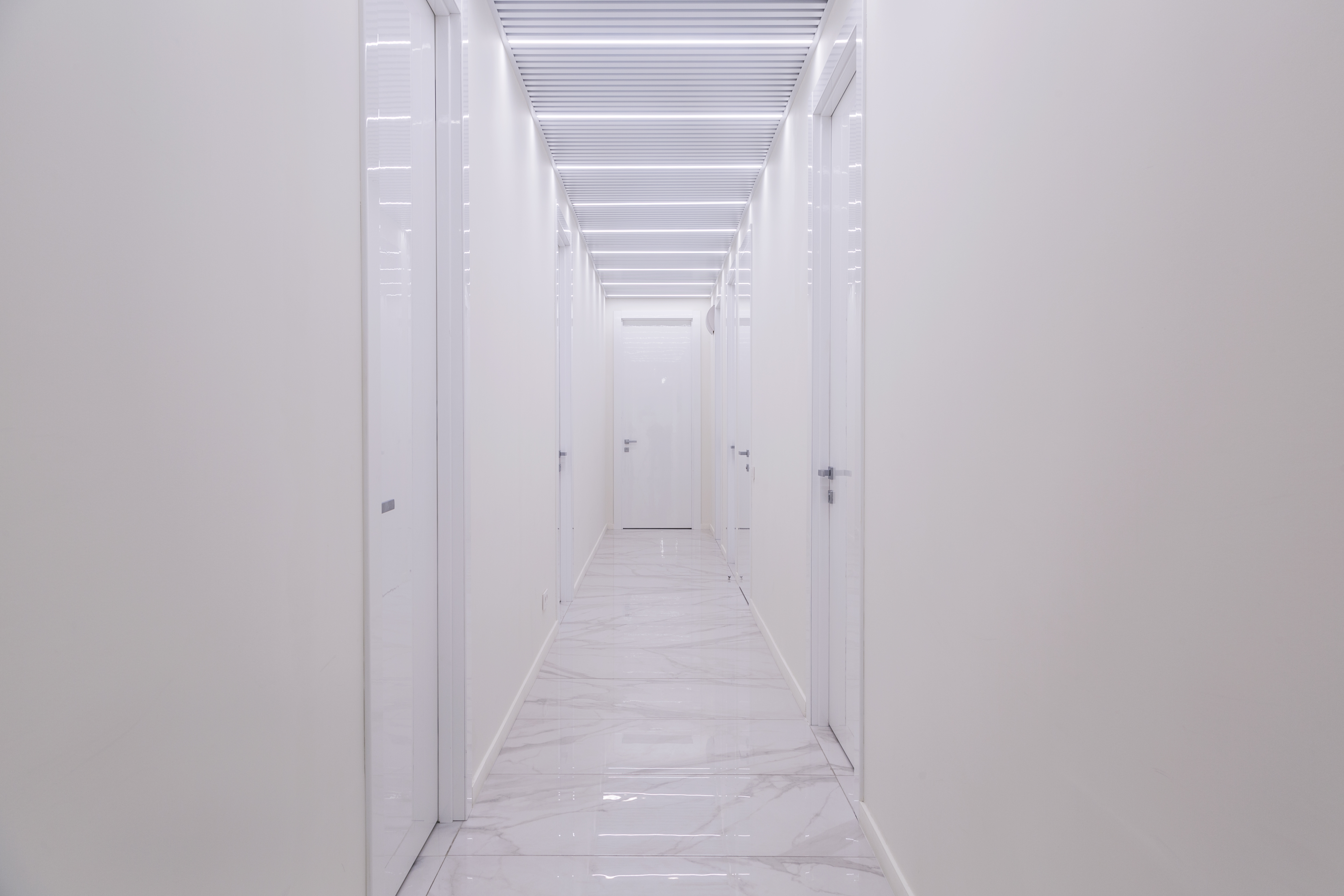 В интерьере имидж-студии «Сезон красоты» преобладает белый цвет, который визуально добавляет помещению простора и легкости. При создании системы освещения было важно подчеркнуть эту атмосферу. Кроме того, необходимо было создать такое световое пространство, в котором цветопередача будет максимально естественной. В качестве основного освещения дизайнер предложил потолочные линии света, созданные на базе алюминиевого профиля и светодиодных лент от Arlight.