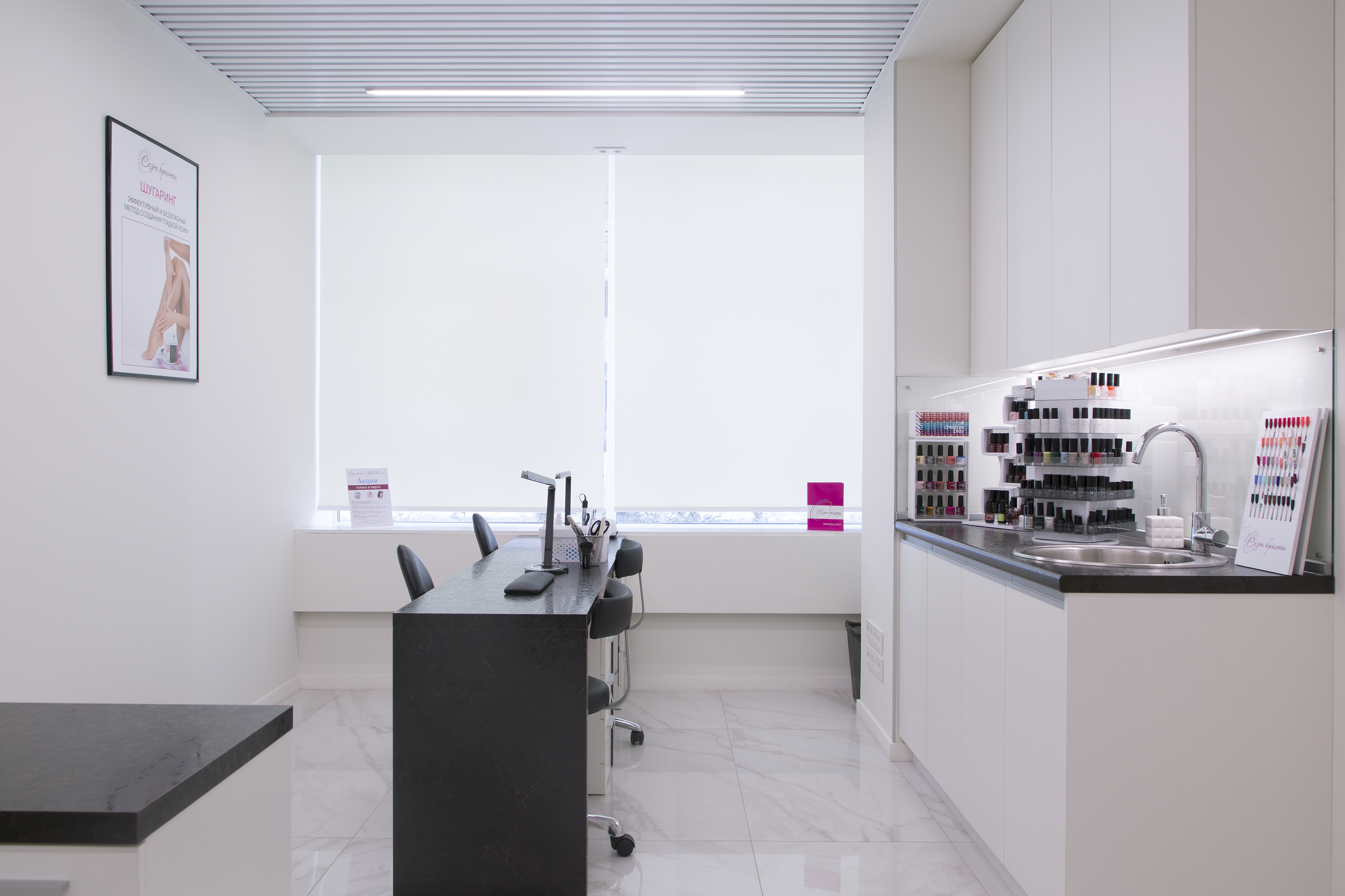 Повышенный уровень цветопередачи (CRI 95..98) и дневной оттенок свечения позволяют избежать искажения цветовых оттенков, что очень важно при работе с краской и декоративной косметикой. Клиенты уже в салоне видят реальный цвет, что позволяет избежать разочарования при выходе на улицу под естественное освещение. Кроме того, цветовая температура ленты (5 000 К) создает комфортную для работы атмосферу, благоприятно сказывается на работоспособности персонала.
