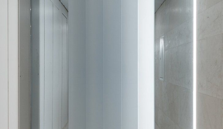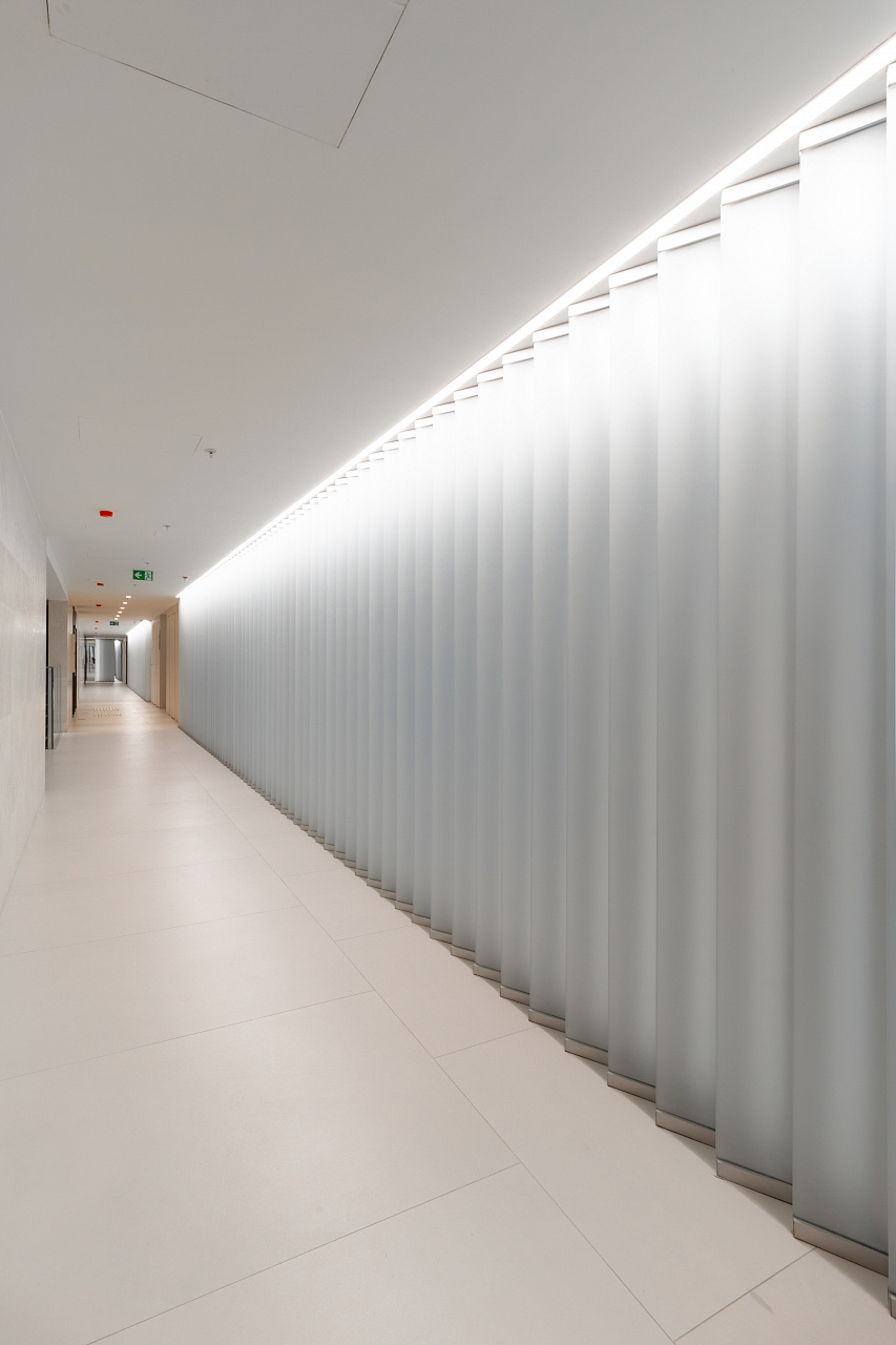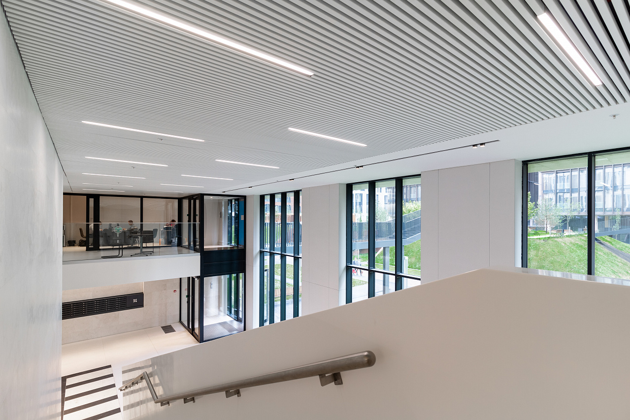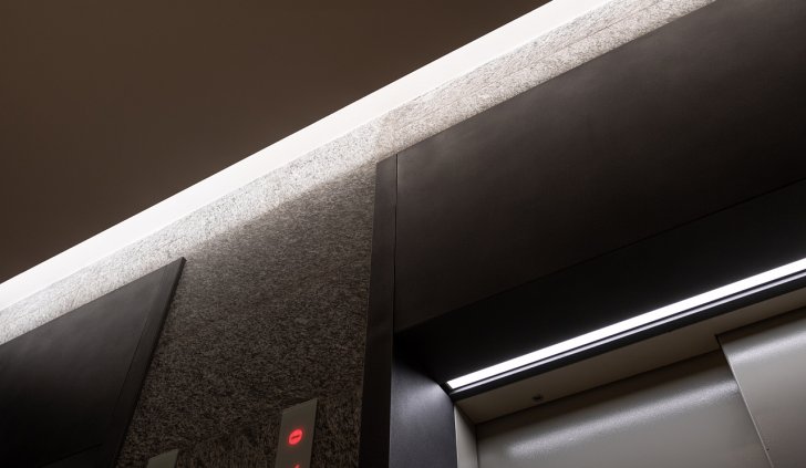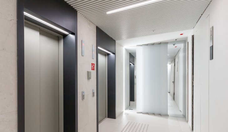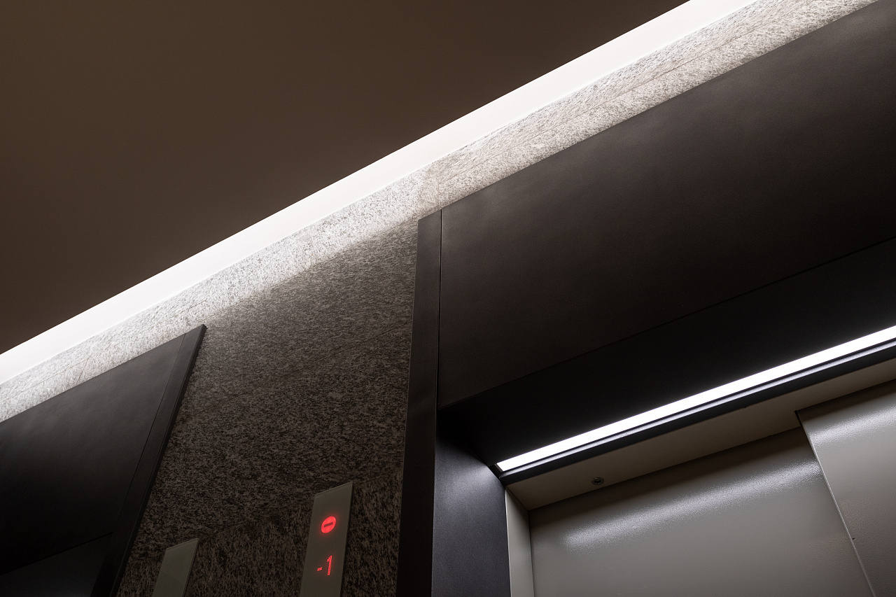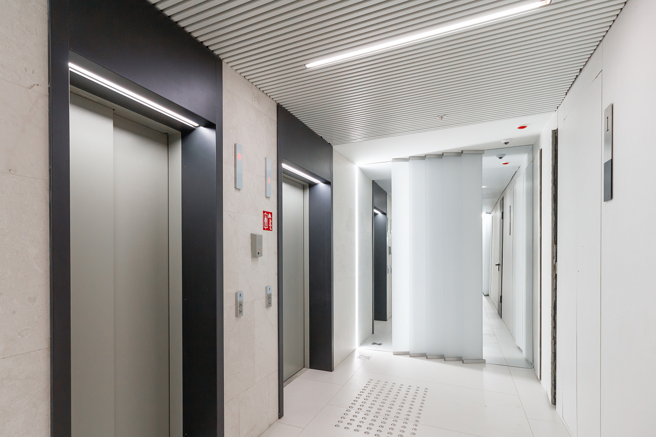Светодиодная подсветка в коридорах и лифтовых холлах создаёт эффект естественного света, проникающего в здание.
