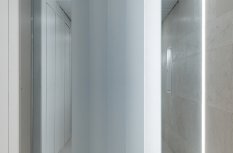 В помещениях общего пользования в ЖК "Садовые кварталы" применяется несколько типов светодиодного освещения, которое выполняет и декоративную роль, и роль основного света. Совмещение светодиодных лент разной температуры белого света позволяет создать естественную атмосферу солнечного дня вне зависимости от времени суток.