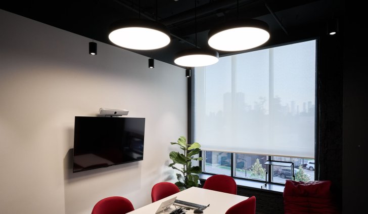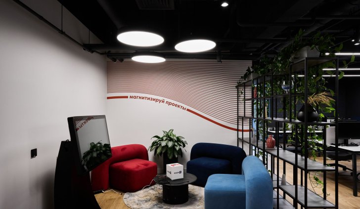 Архитектура данного пространства позволяет динамично использовать трековые системы. Они позволяют создать разнообразное освещение без необходимости выполнения серьезных потолочных работ. Минималистичные треки гармонично сочетаются с лофтовым стилем, который отлично вписывается в атмосферу бывшей фабрики.
