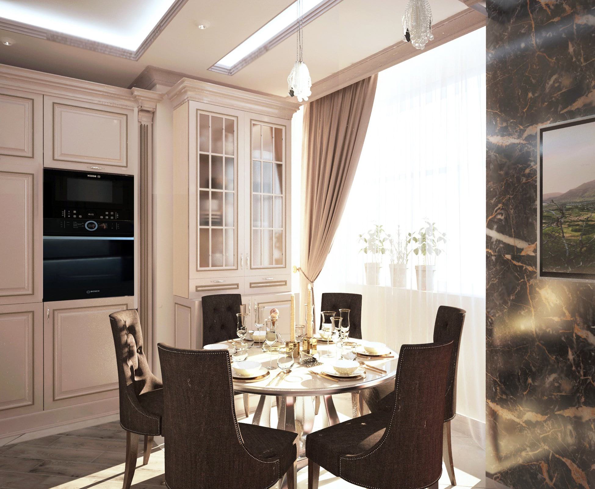 Выполняя пожелания заказчиков, при выборе источника света для подсветки была выбрана светодиодная лента из серии SUN , главной особенностью которой является невероятно высокий уровень цветопередачи (CRI>99). Благодаря улучшенным спектральным характеристикам излучение ленты максимально приближено к естественному солнечному. Дневной белый оттенок свечения (4 000 К) комфортно воспринимается большинством людей. Теперь недостаток солнца в квартире восполняет потолочная подсветка, которая обеспечивает корректное восприятие оттенков, снижает нагрузку на зрение, повышает настроение, работоспособность и стрессоустойчивость в любое время года и любую погоду.