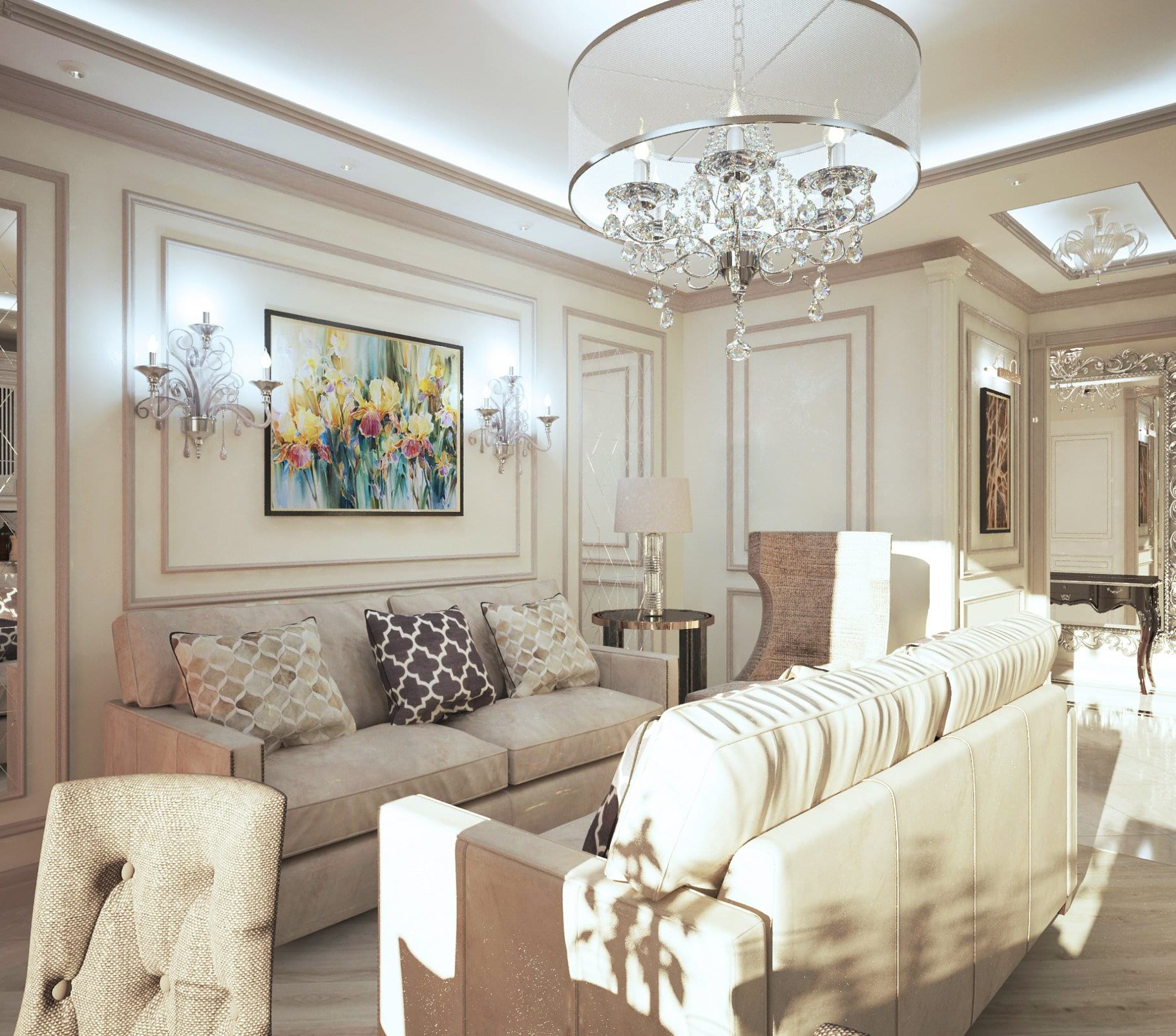 При обсуждении проекта освещения в квартире в ЖК «Яуза Парк», заказчики выразили пожелание сделать солнечное, позитивное световое пространство. В условиях московской зимы нехватка солнца часто сказывается на настроении и самочувствии жителей столицы.