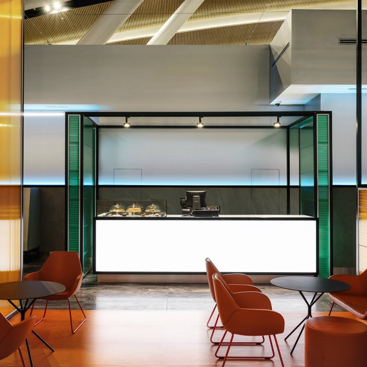 Бизнес-зал «Горизонт» в аэропорту Платов — лауреат профессиональной премии BEST PUBLIC SPACE Professional Design Award 2019 в номинации «Интерьер объектов транспортной инфраструктуры». Здесь воплотились три стихии — солнце, небо и земля. Теплый янтарный, небесный серо-голубой и насыщенный зеленый цвет листвы.