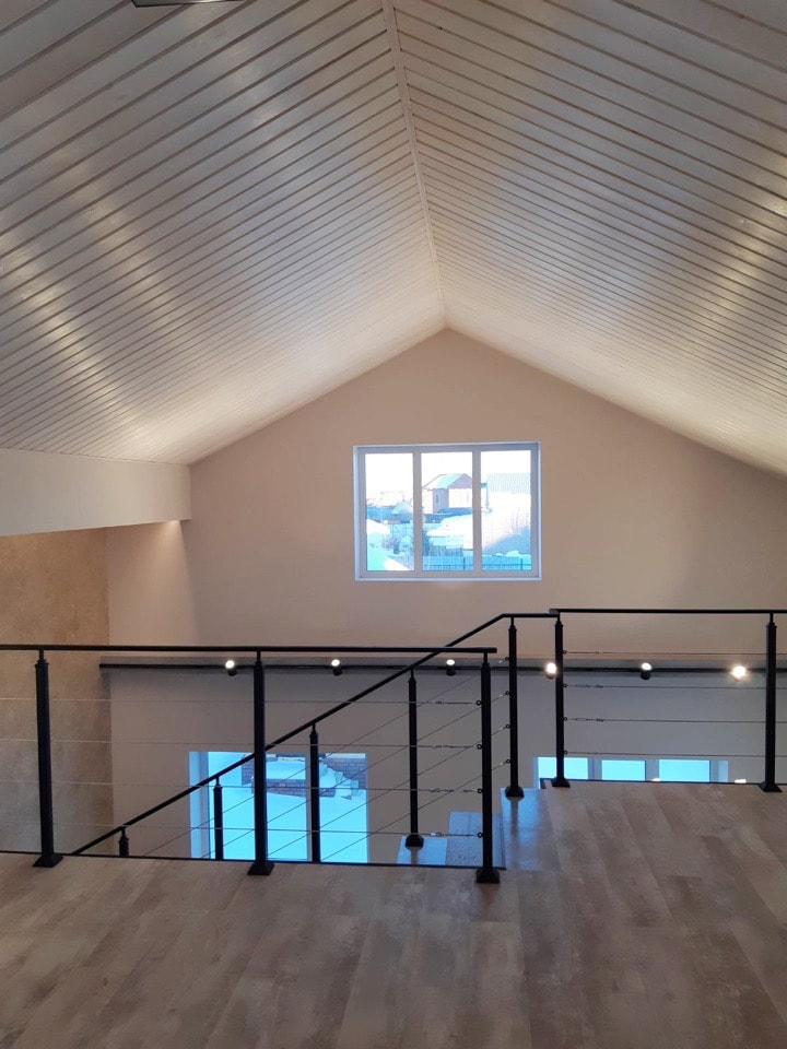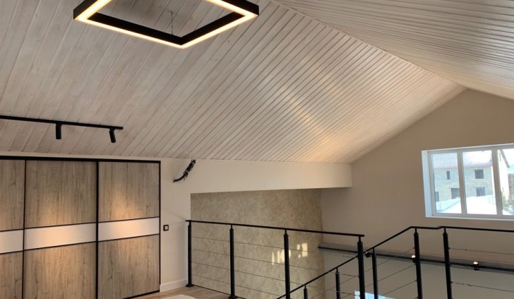 Для освещения частного дома с интересной планировкой и высокими потолками было предложено несколько вариантов источников света.