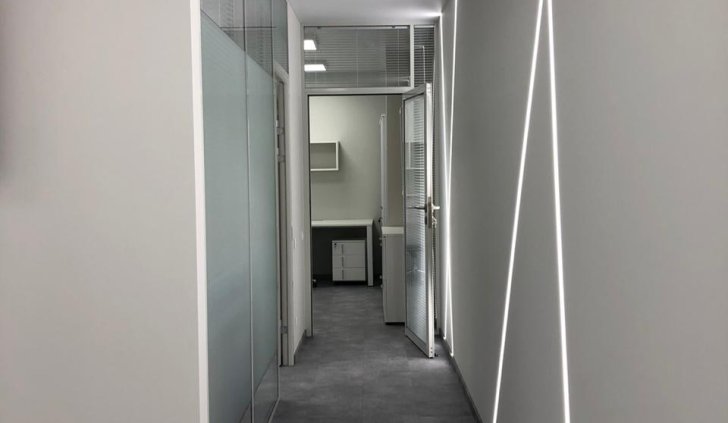 Такое количество разнообразных источников света на небольшой площади офиса позволяет легко менять интенсивность и схему освещения, в зависимости от желания и целей владельца и его сотрудников.