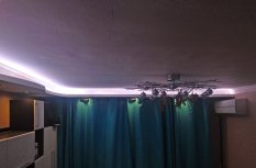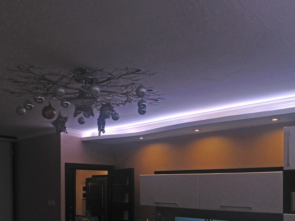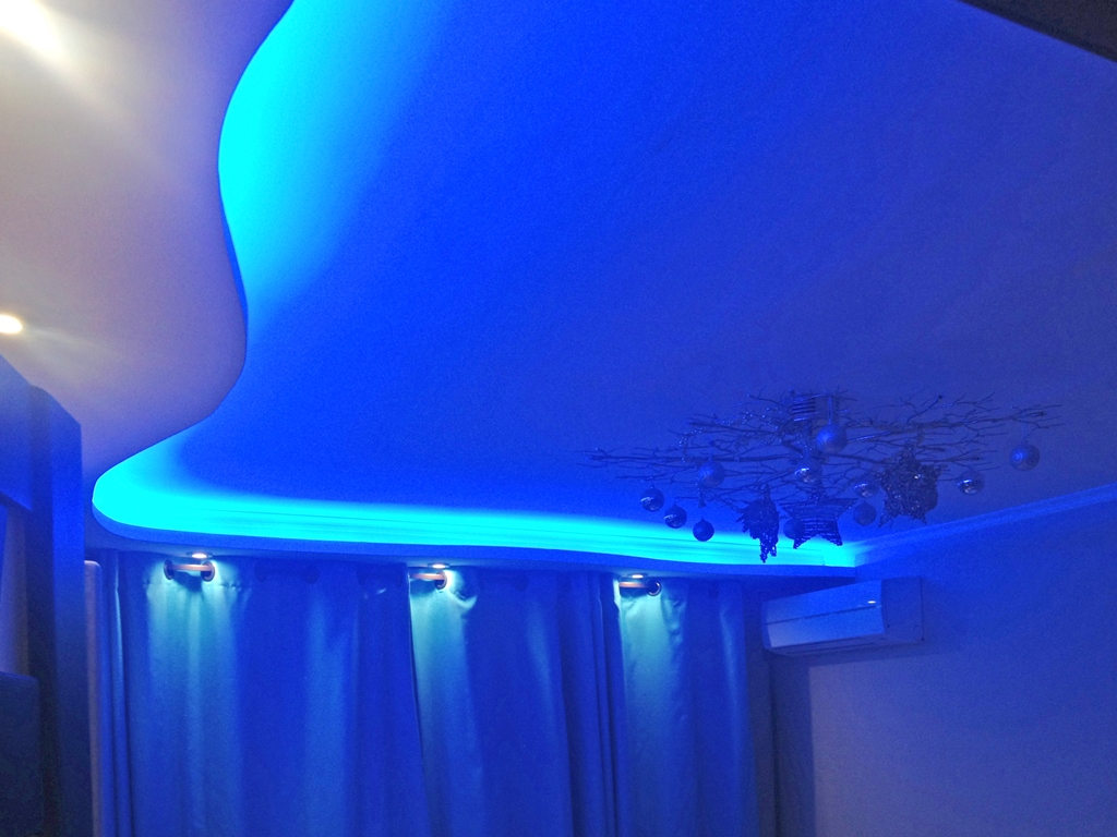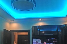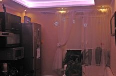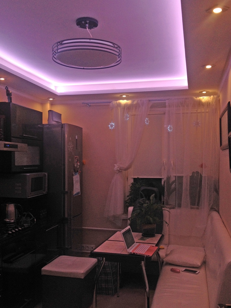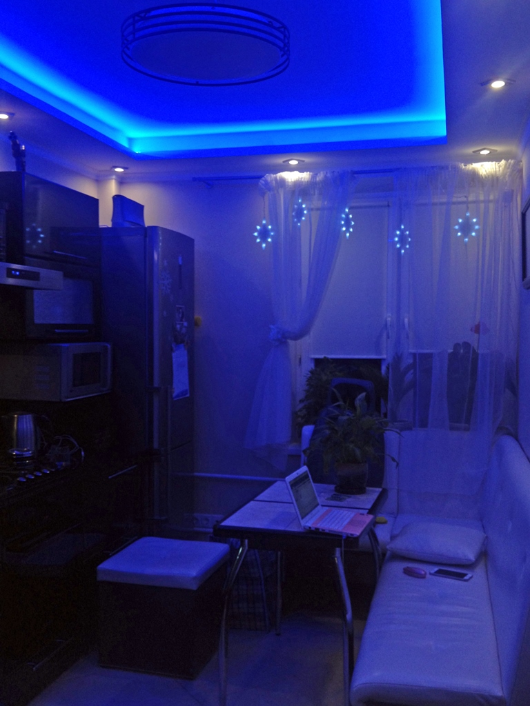 Декоративная закарнизная подсветка в квартире добавит новые нотки в интерьер. Применение многоцветной светодиодной ленты Arlight и RGB контроллера Arlight дает возможность добавить новые краски и подстроить обстановку под настроение.