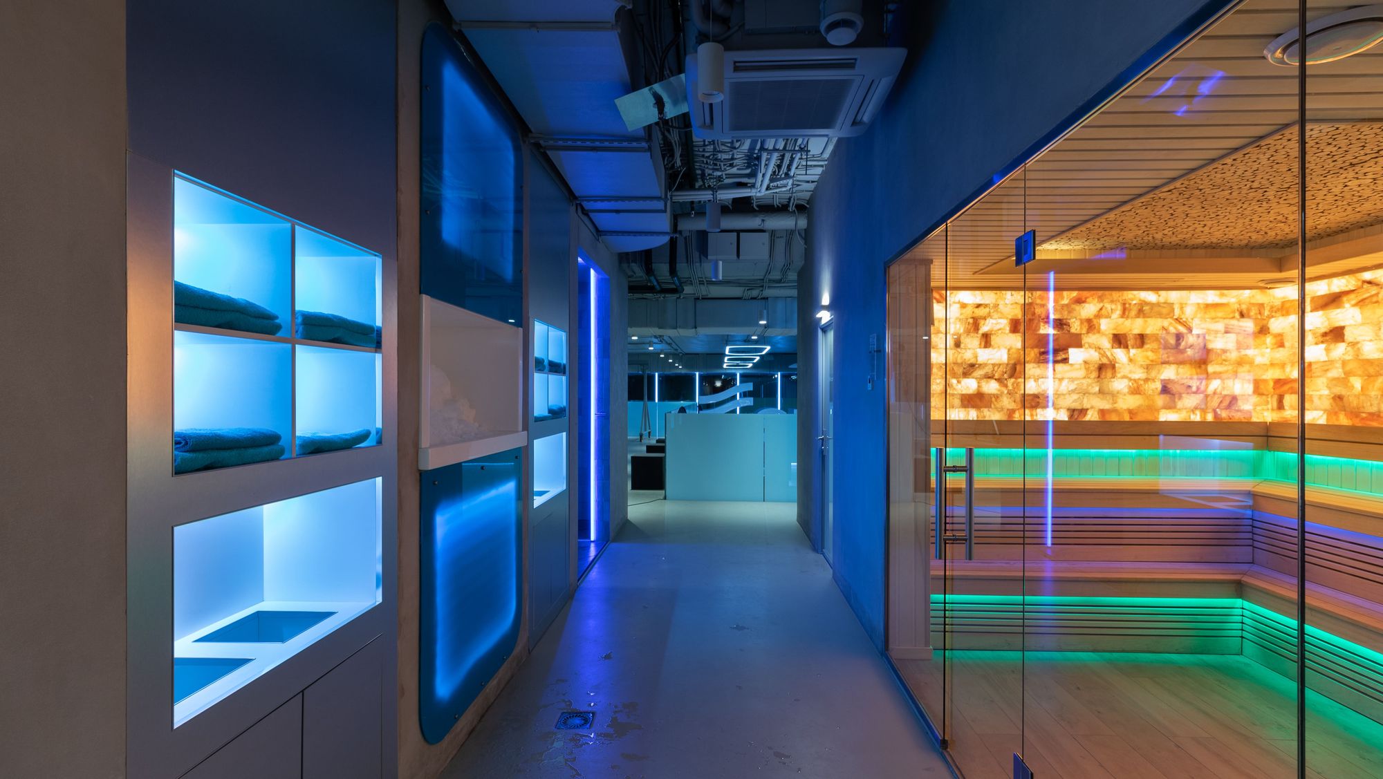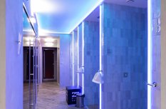 Внушительный современный дизайн и продуманные до мелочей сценарии освещения делают этот проект захватывающим. Многообразие решений и оригинальные сочетания света делают девизом клуба "Море цвета и света". RGB-ленты, отражающиеся от воды, создают красочные рисунки, превращая её в уникальное полотно.