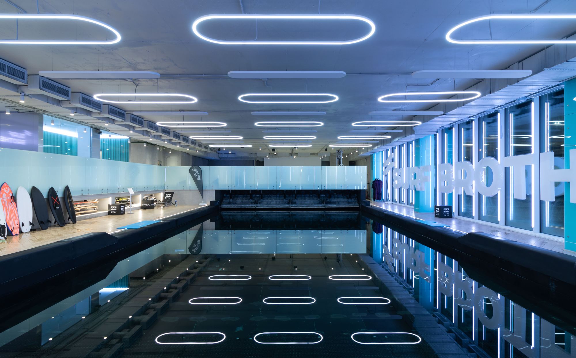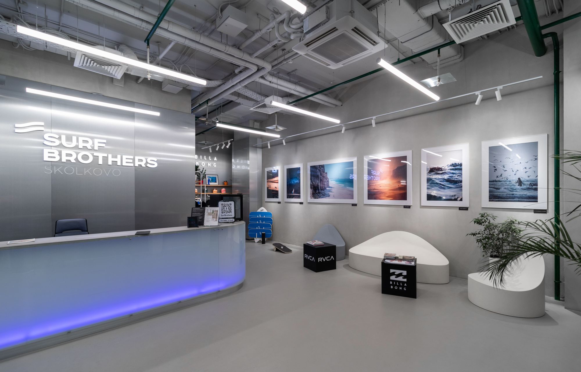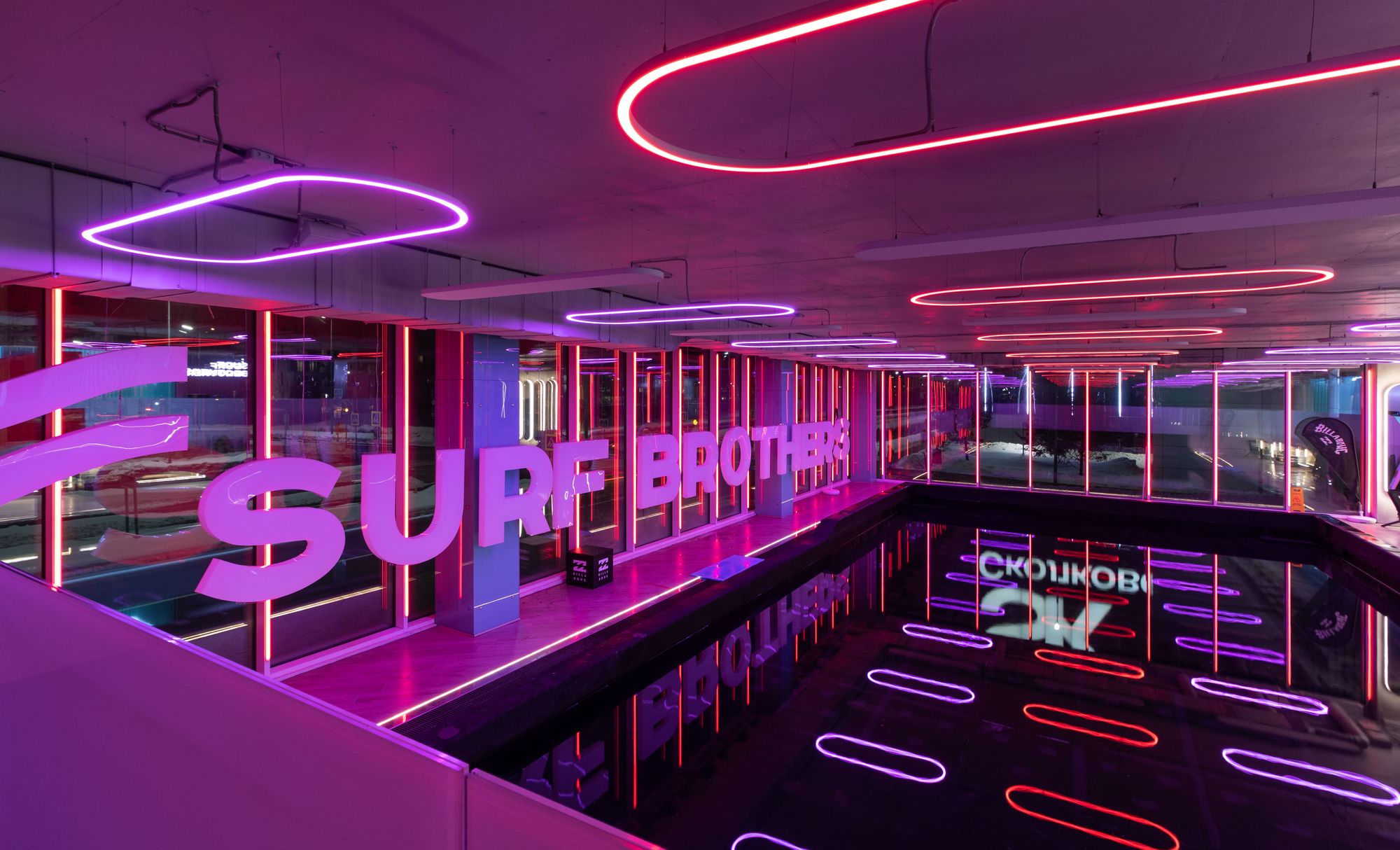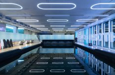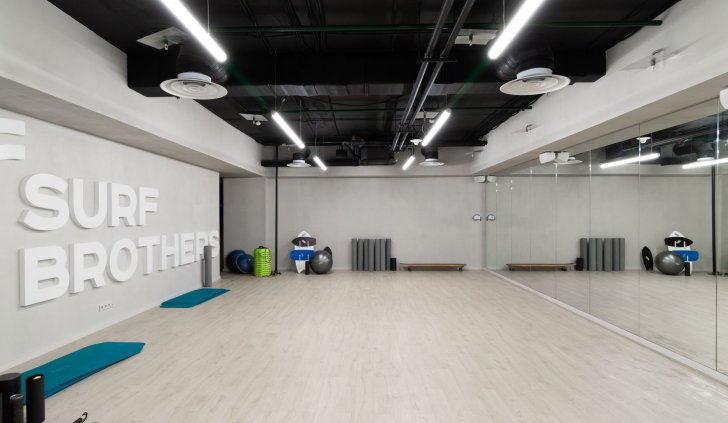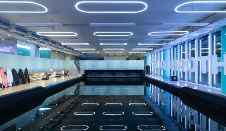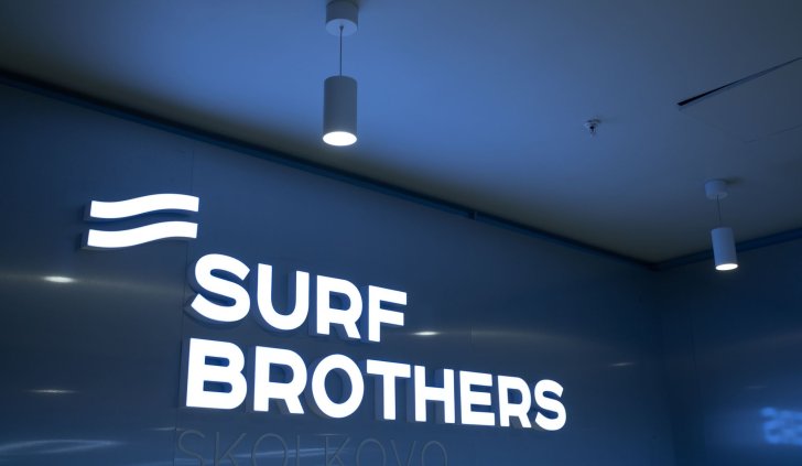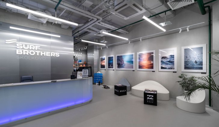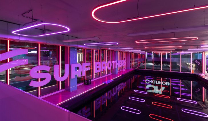 Серфинг-центр в Сколково раскинулся на площади 2800 квадратных метров и служит примером грамотно спроектированного пространства.