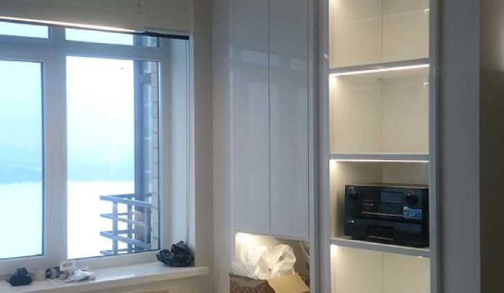 Третий тип - это подсветка шкафа. Светодиодная лента была установлена на его полки. Её свет может подчеркнуть красоту стоящих на ней украшений или просто поможет быстро найти нужную вещь.