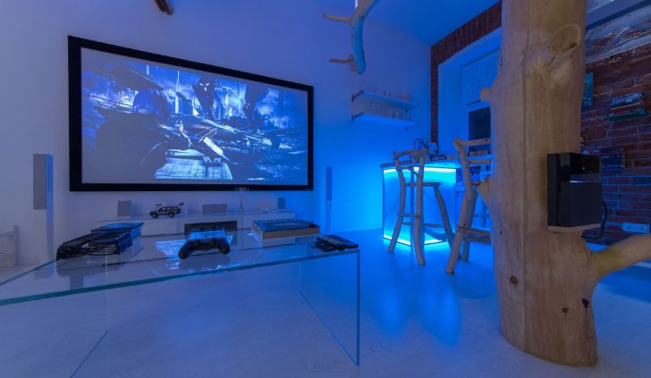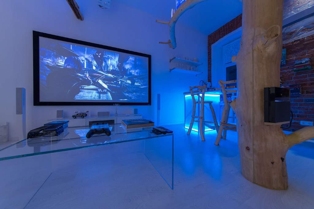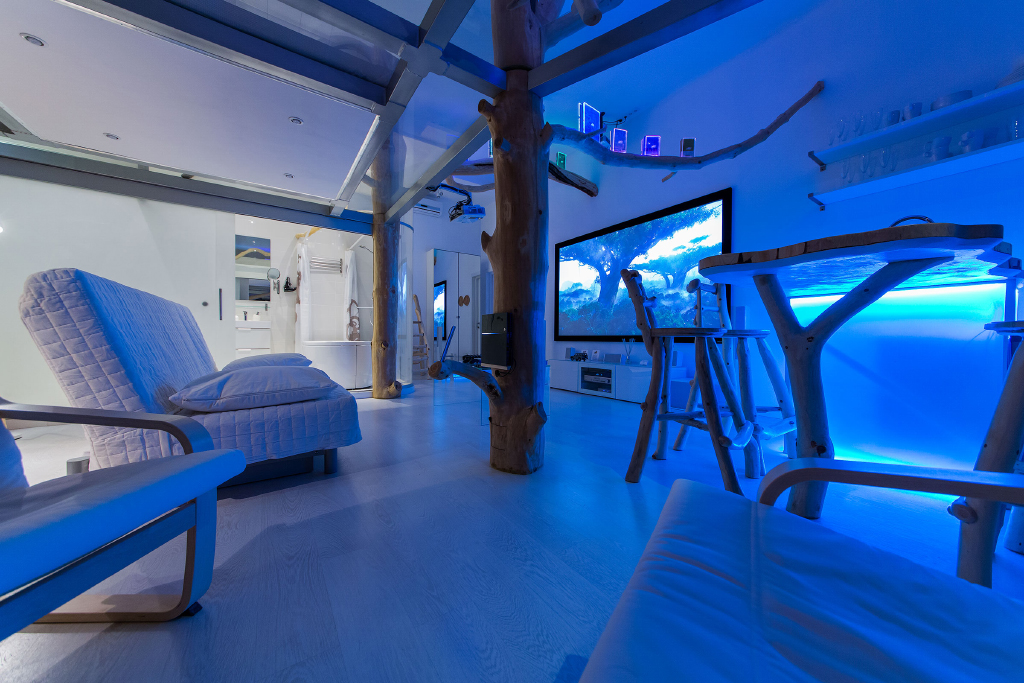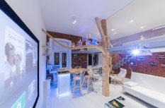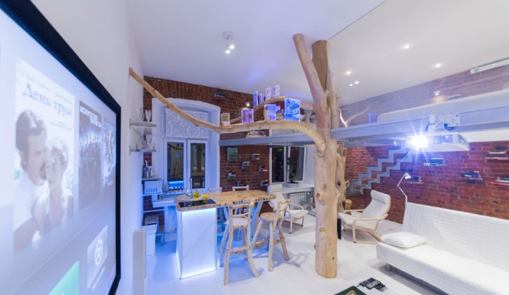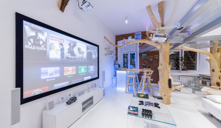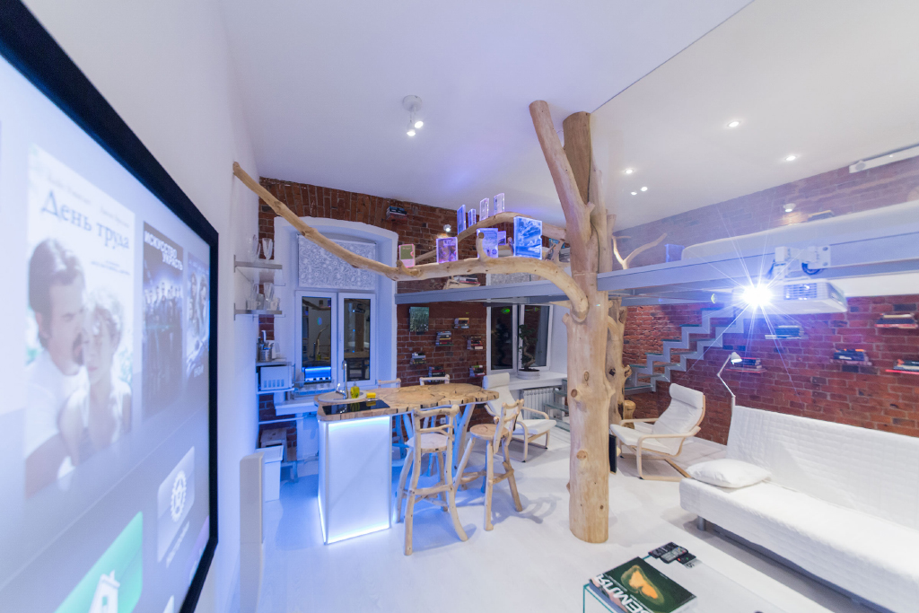 Эта студия отличается необычным сочетанием хай-тека и натуральных материалов, природных форм.