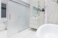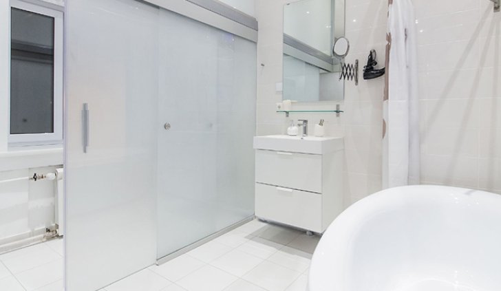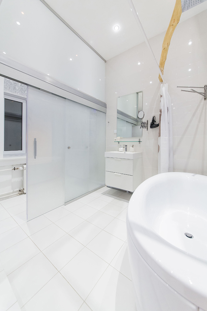 Для освещения ванной комнаты были использованы встраиваемые светодиодные светильники.