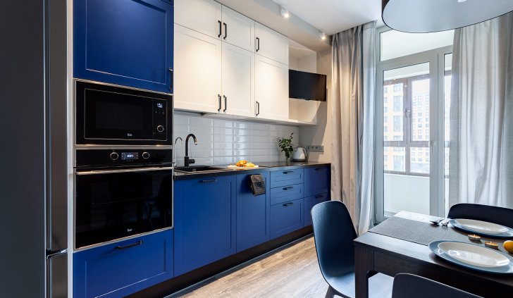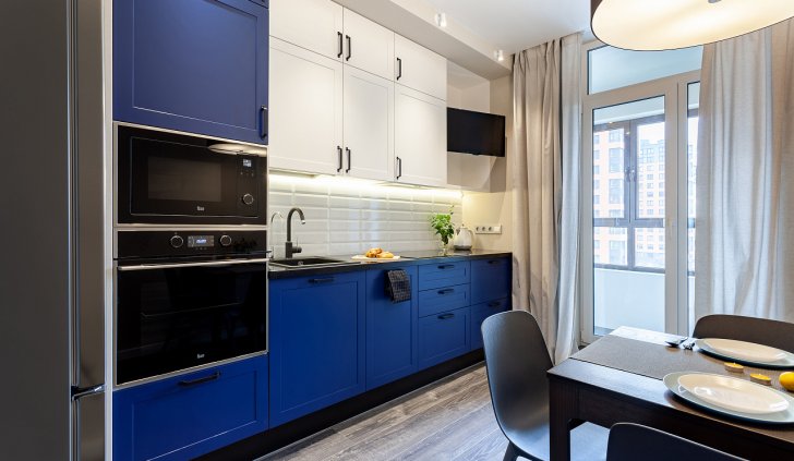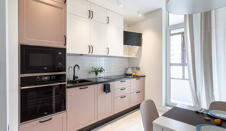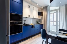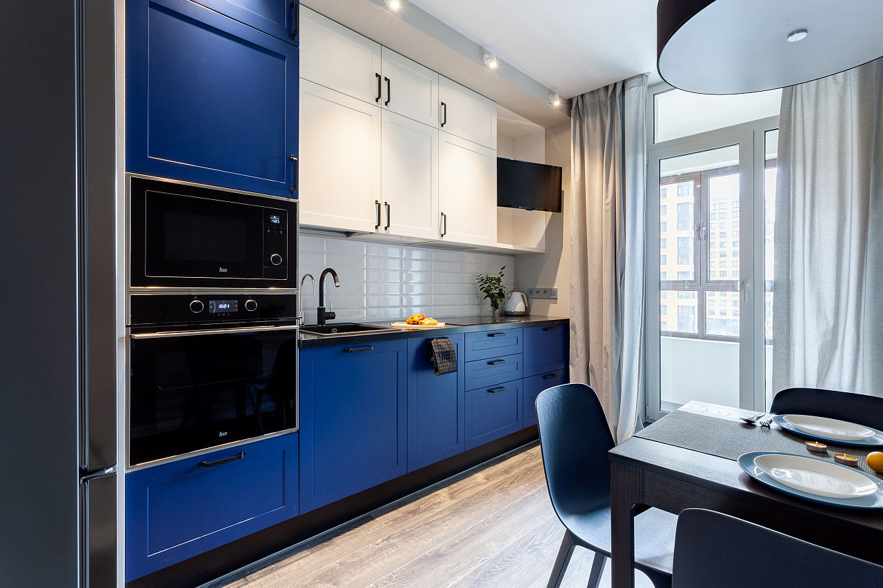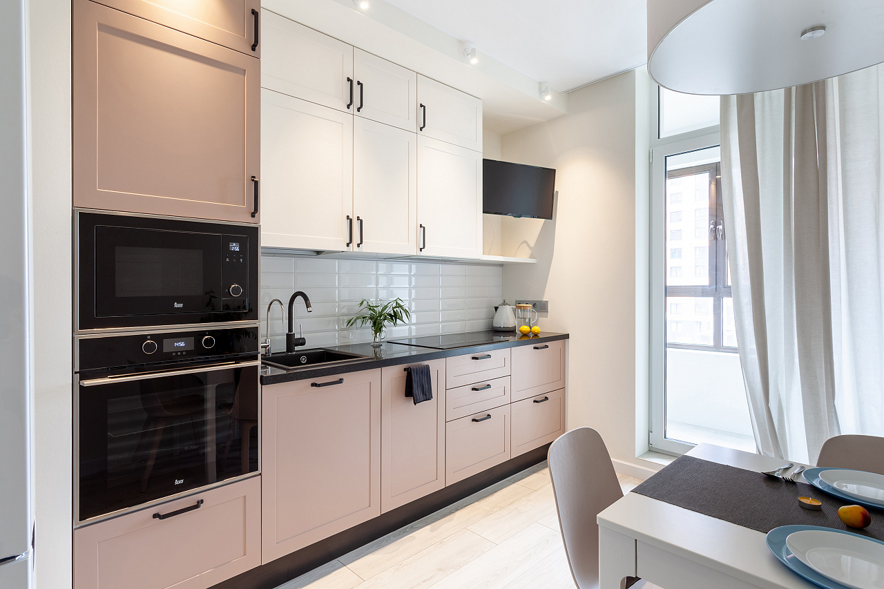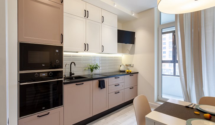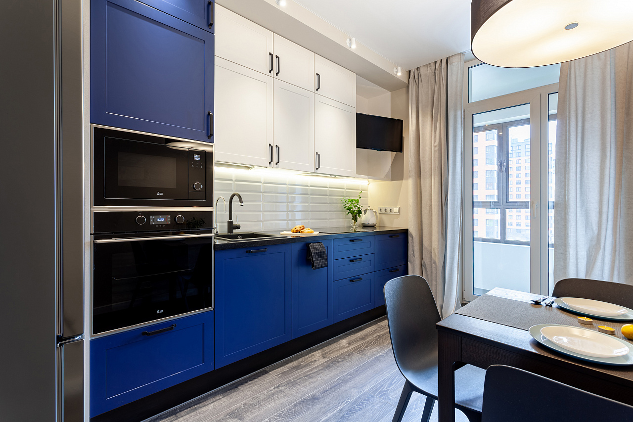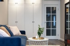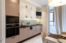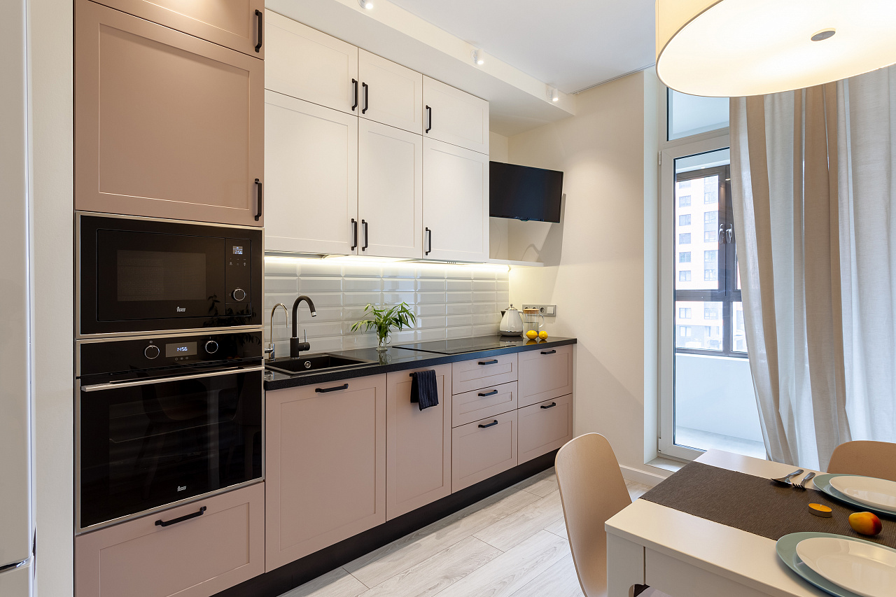 Основное настроение задают встроенные светильники, которые можно вращать, менять направление и угол освещения. Такая гибкость решения и расположение светильников по периметру потолка позволяет настраивать световой сценарий, перераспределять акценты и менять назначение освещения с декоративного на основное и наоборот.